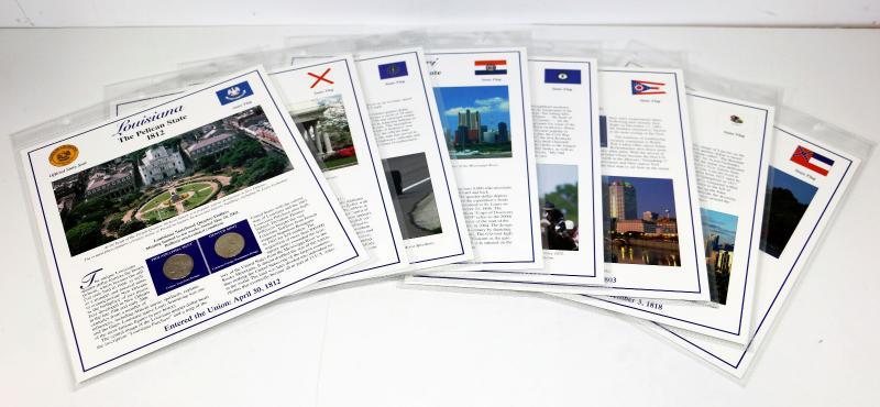 Set of 8 Panels US Statehood Quarters & Stamps Collection