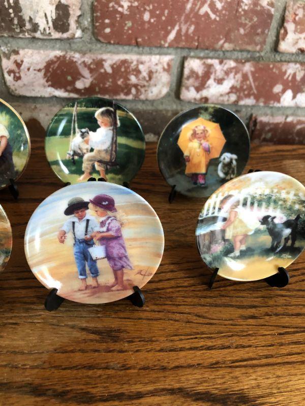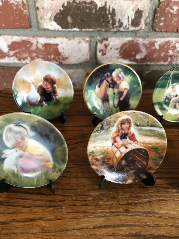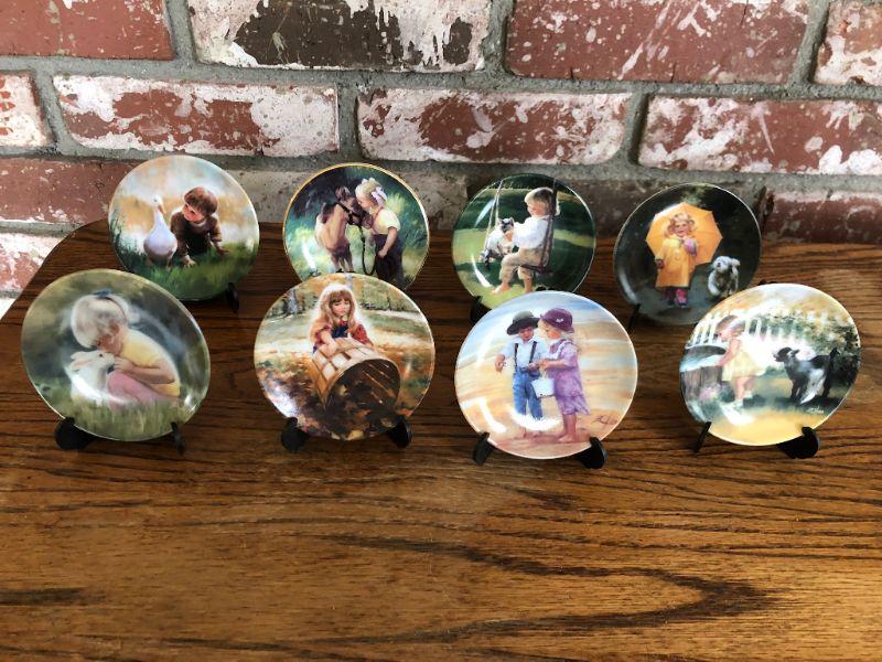 Set of 8 collector plates by famous artist of children, Donald Zolan. Issued by Pemberton & Oakes, 3" size. Good Condition.