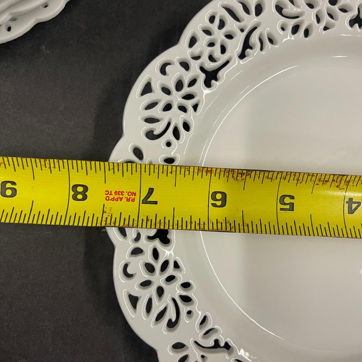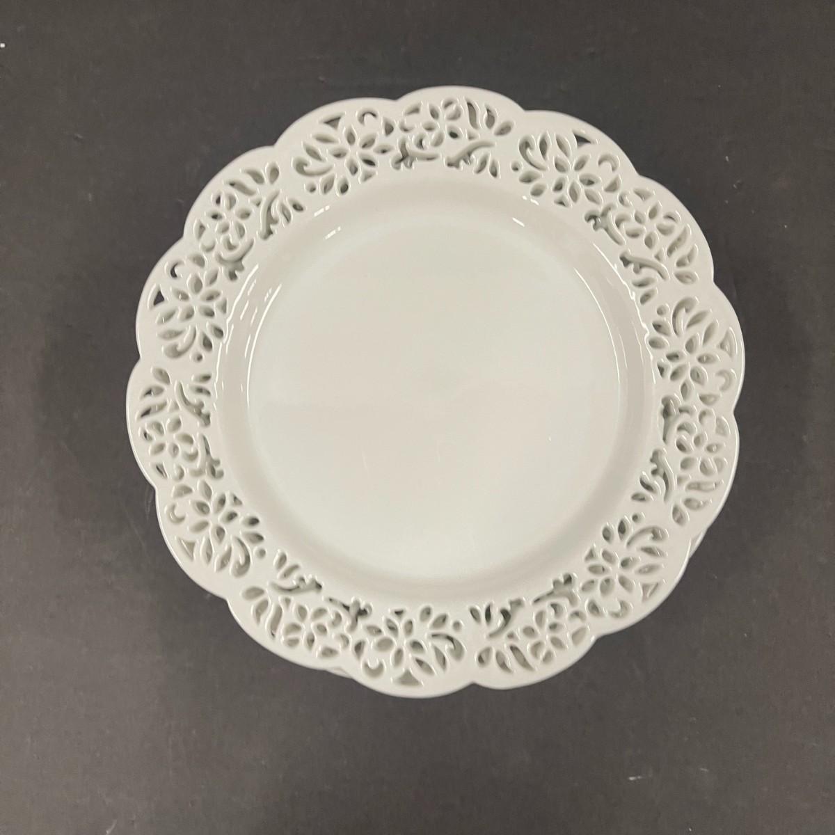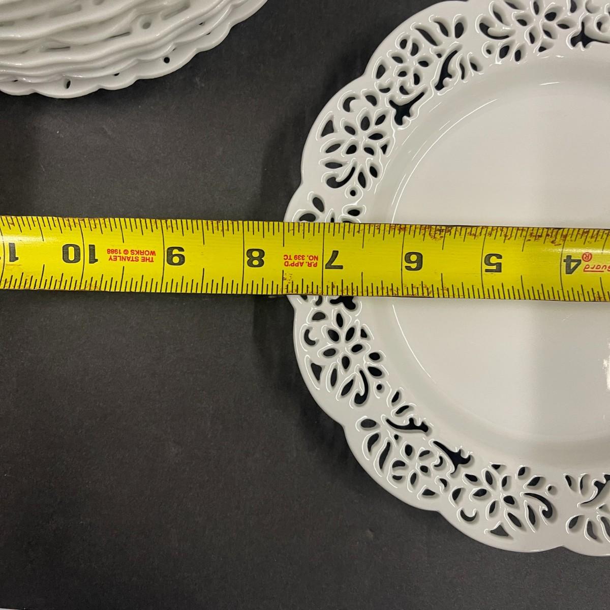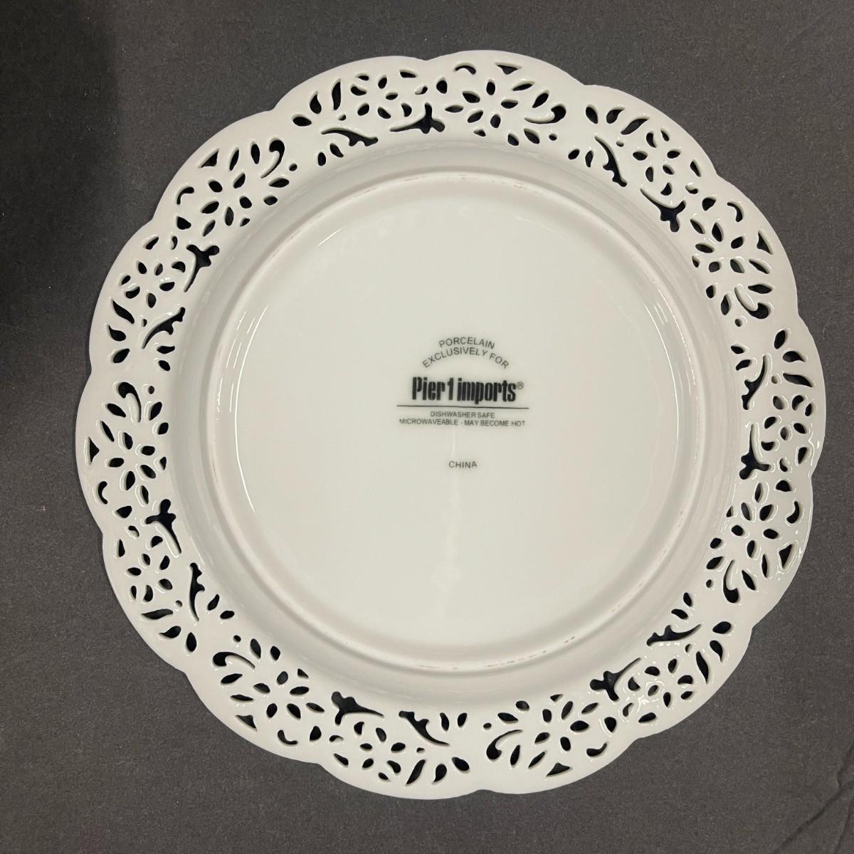 Set of 8 Pier 1 White Plates with Pierced Rims, 7 1/2"