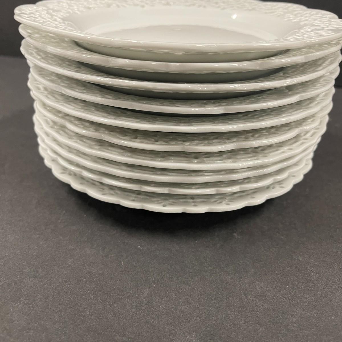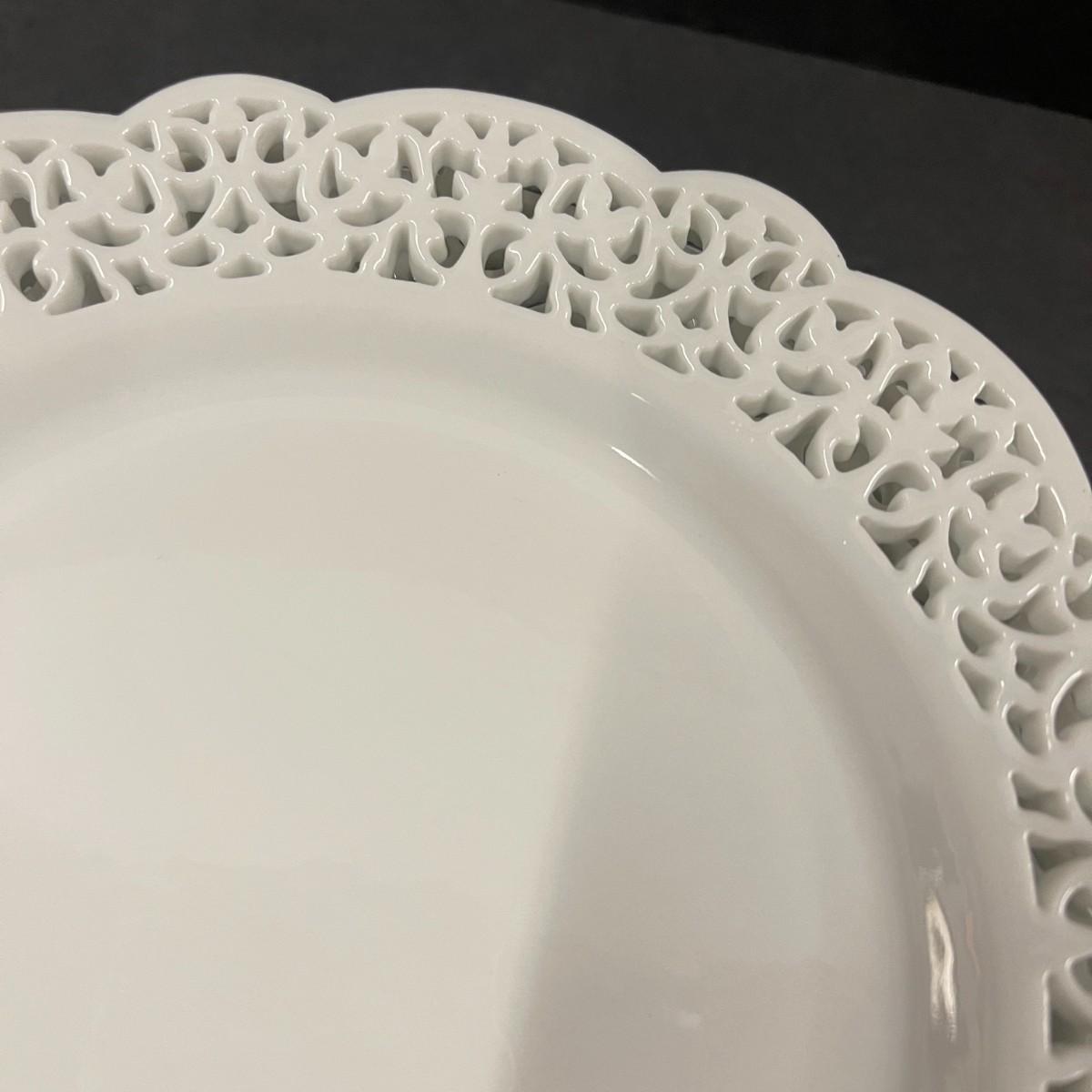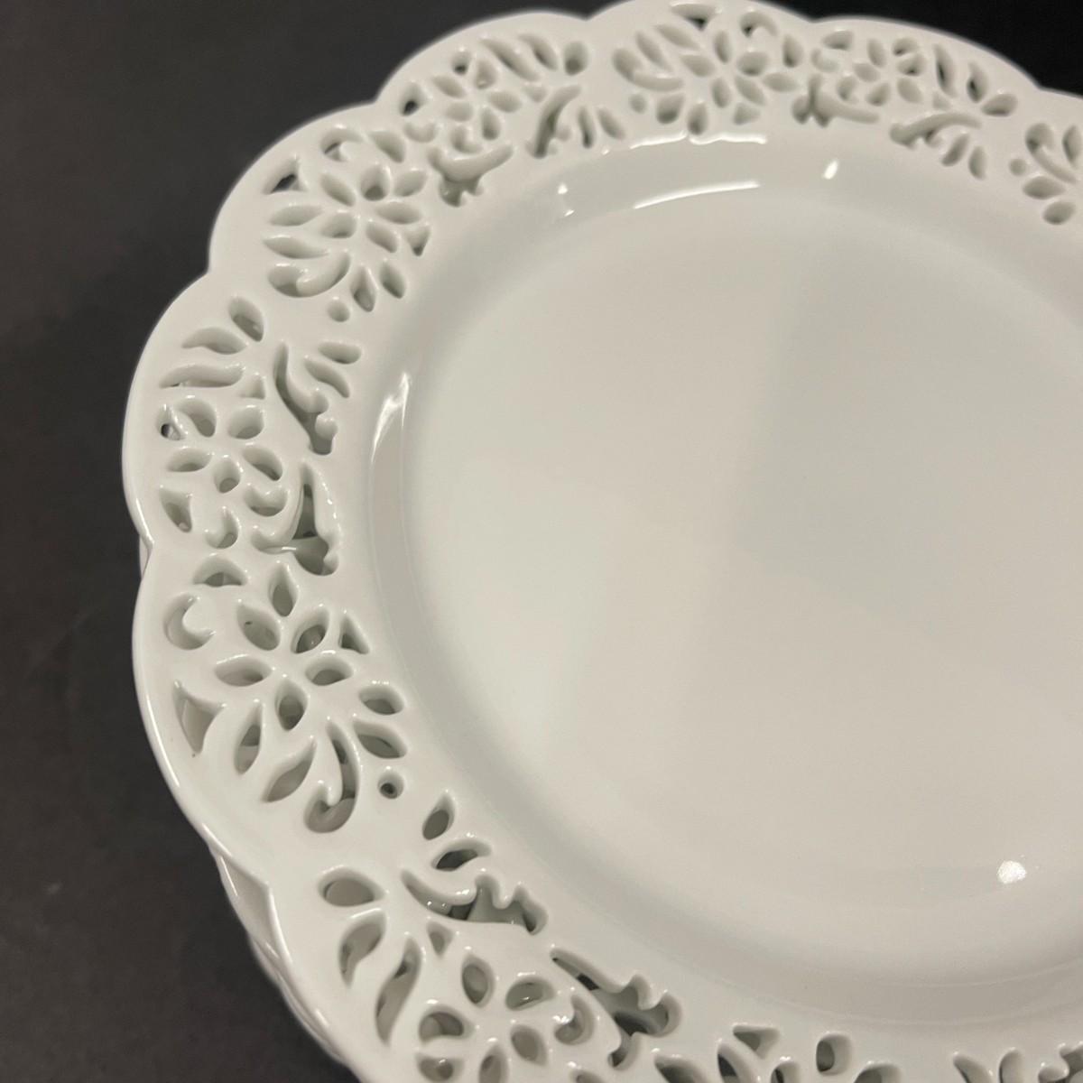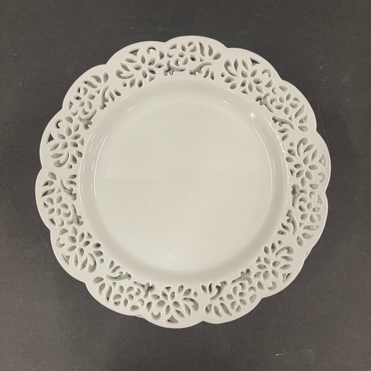 Set of 8 Pier 1 White Plates with Pierced Rims, 7 1/2"