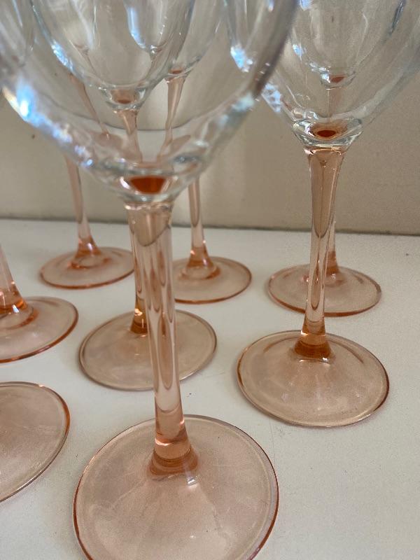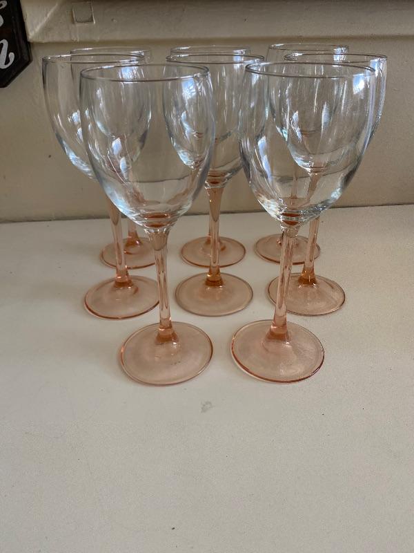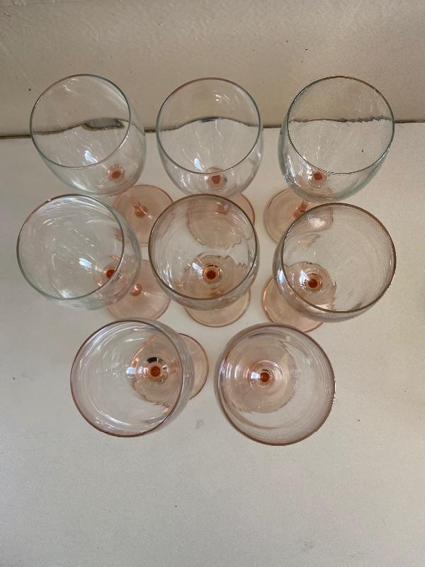 Set of 8 Pink Stem Wine Glasses