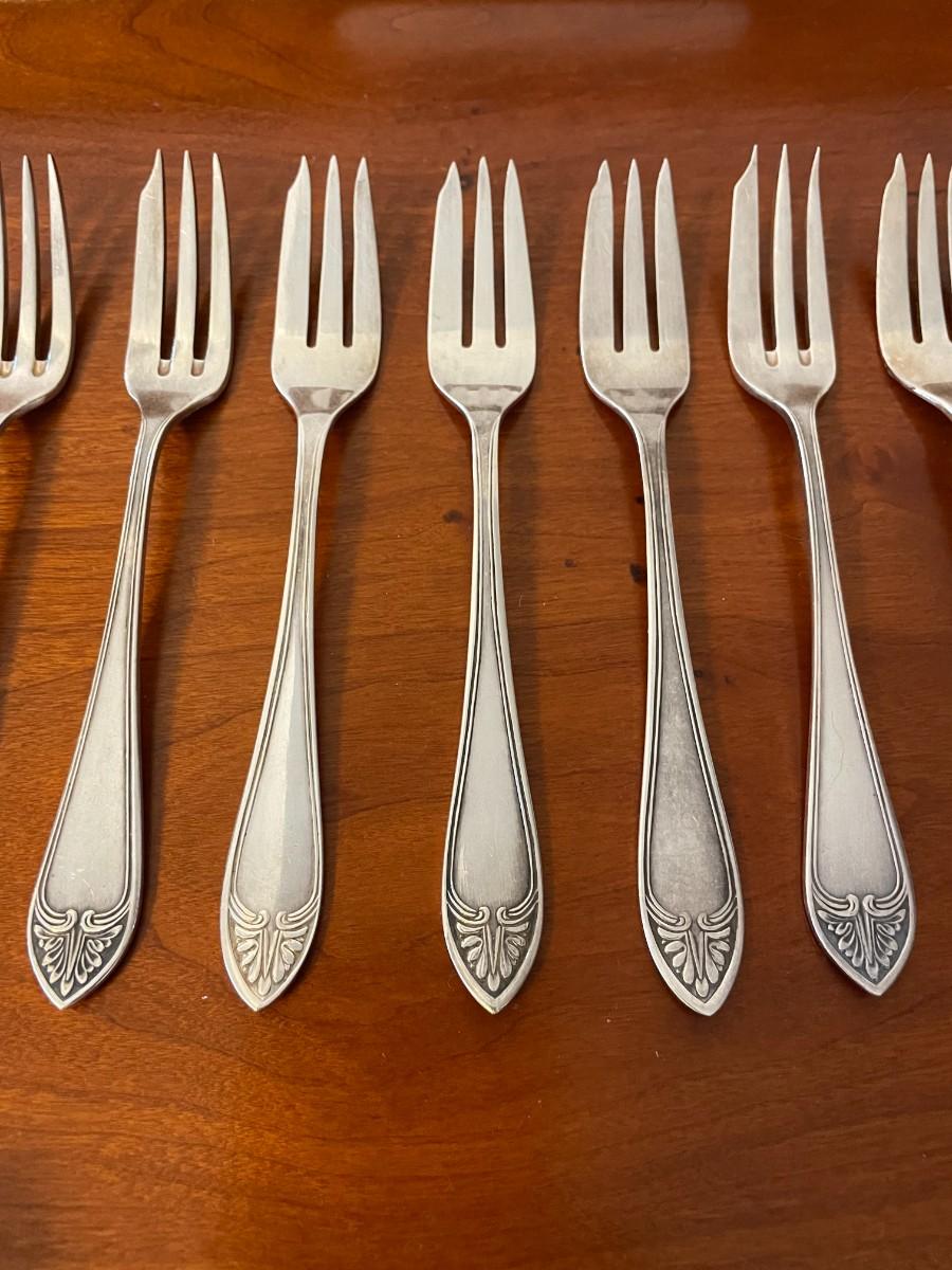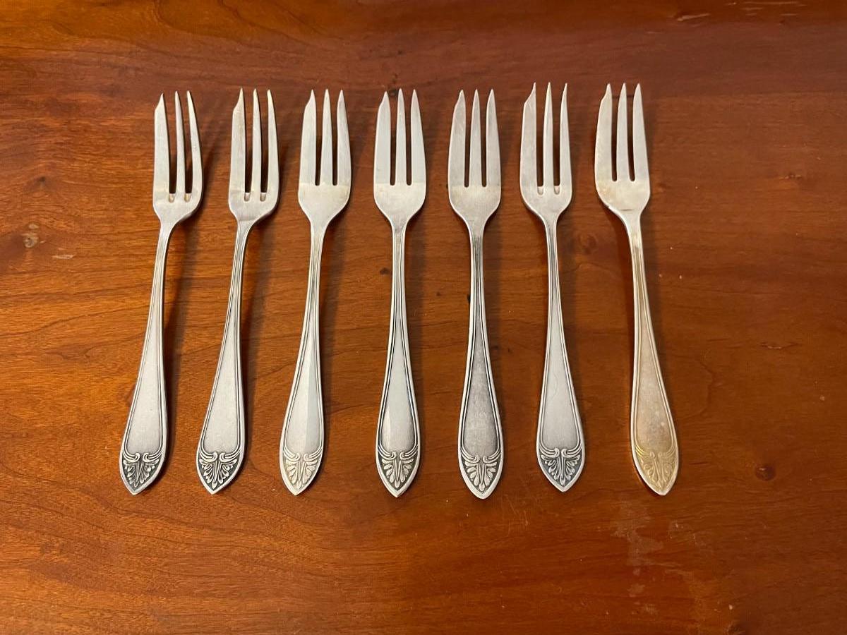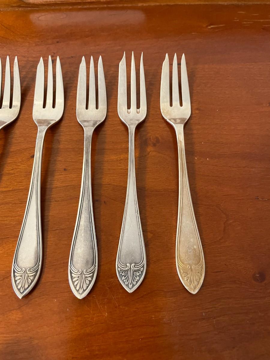 Normal wear. In very nice condition. Only 7 of the 8 are shown in the pictures.