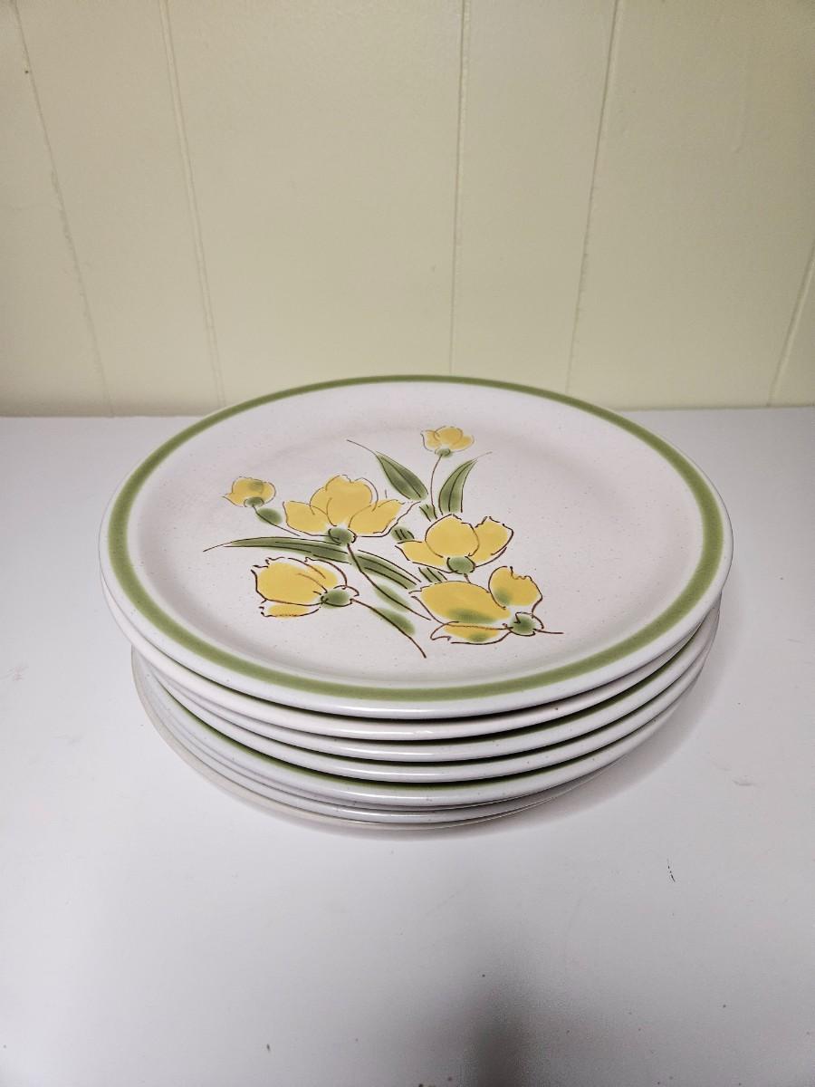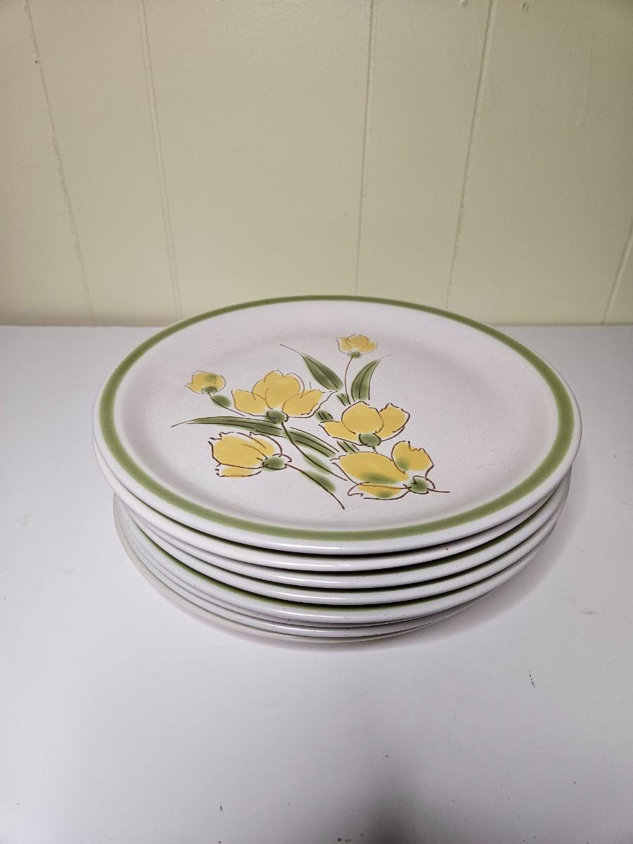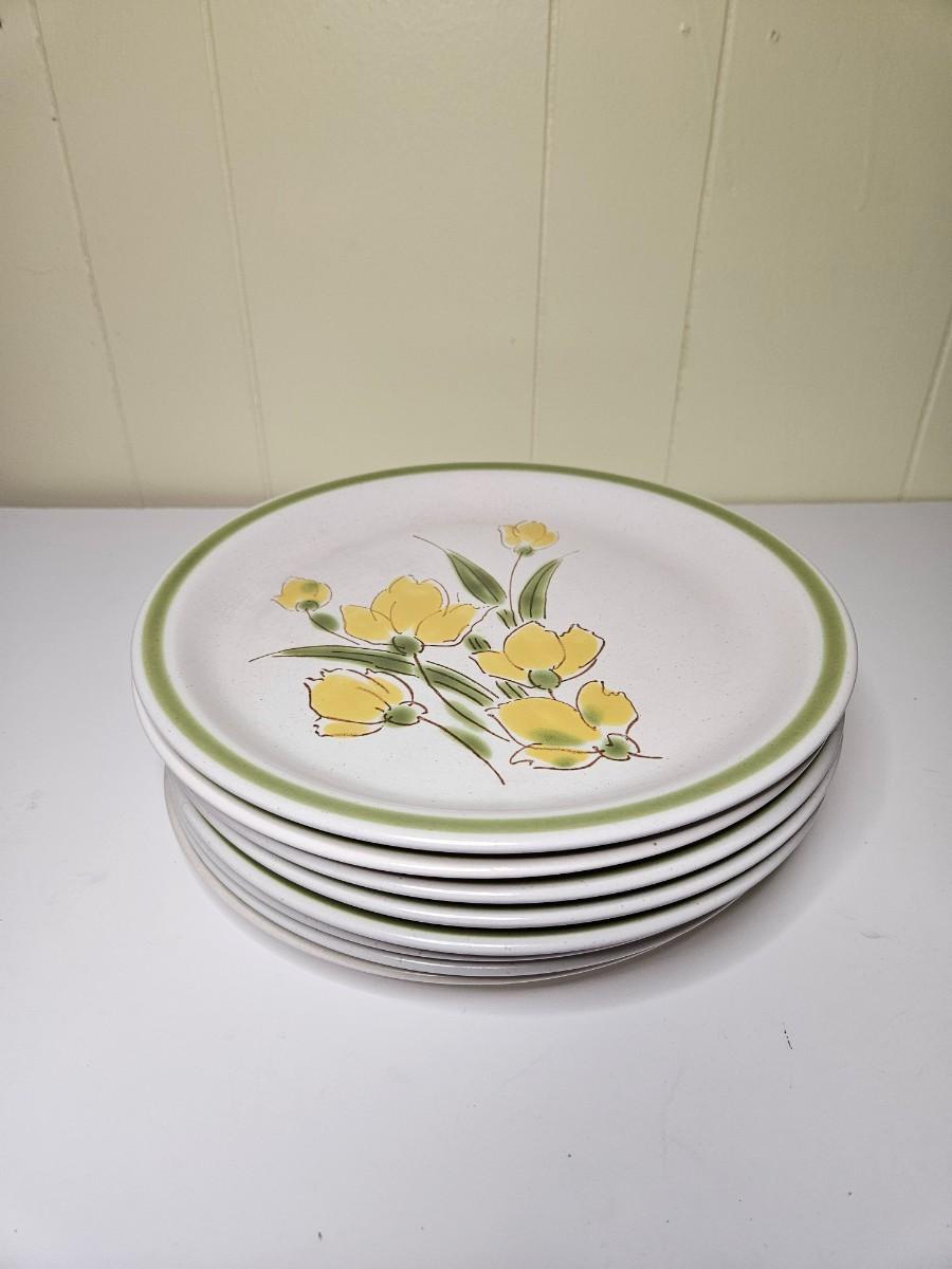 Set of 8 Vintage Stoneybrook Style Stoneware Floral Plates