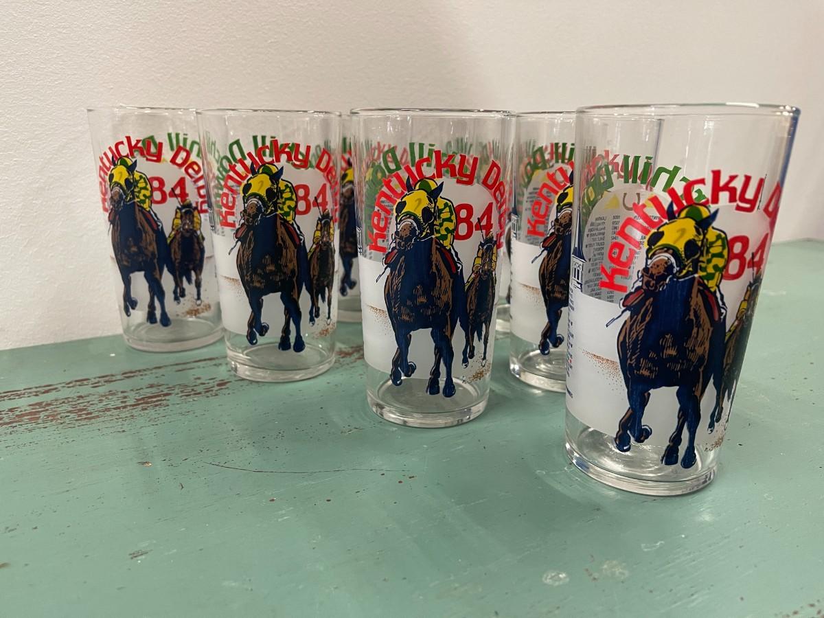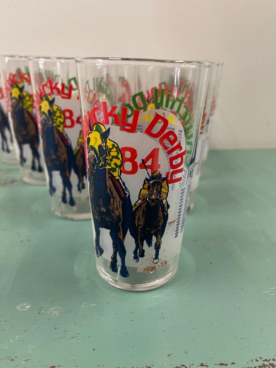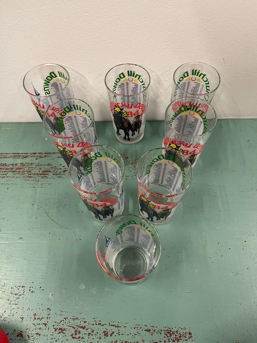 Set of 8 vintage 1984 Kentucky Derby souvenir glasses. Very good condition. # 914