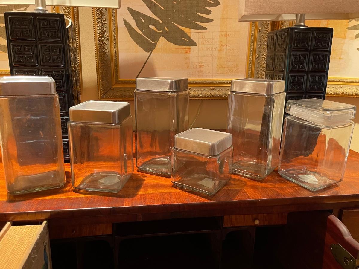 Set of 8 Vintage Anchor Hocking Stackable Jars with Lids