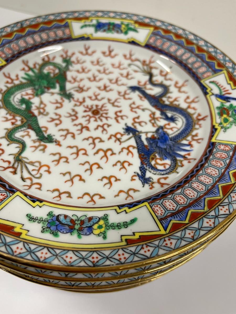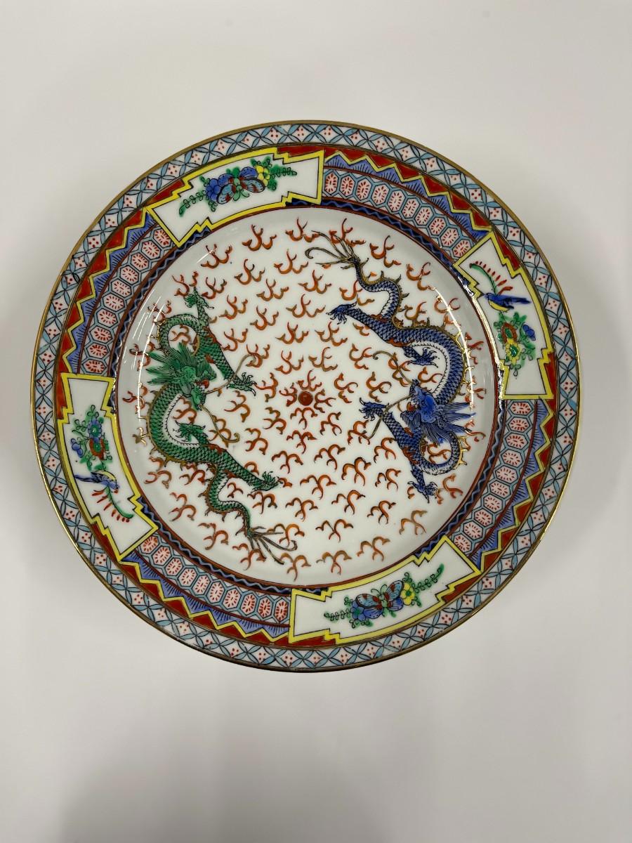 Set of 8 Vintage Chinese Double Dragon Porcelain Plates