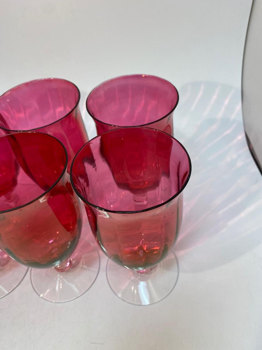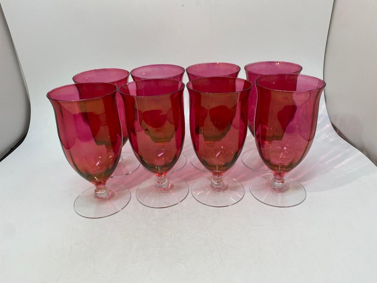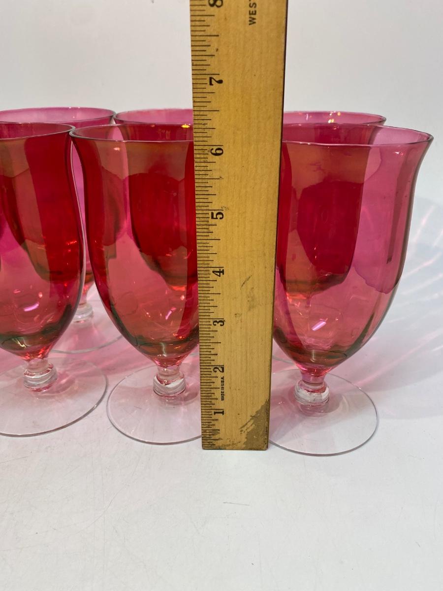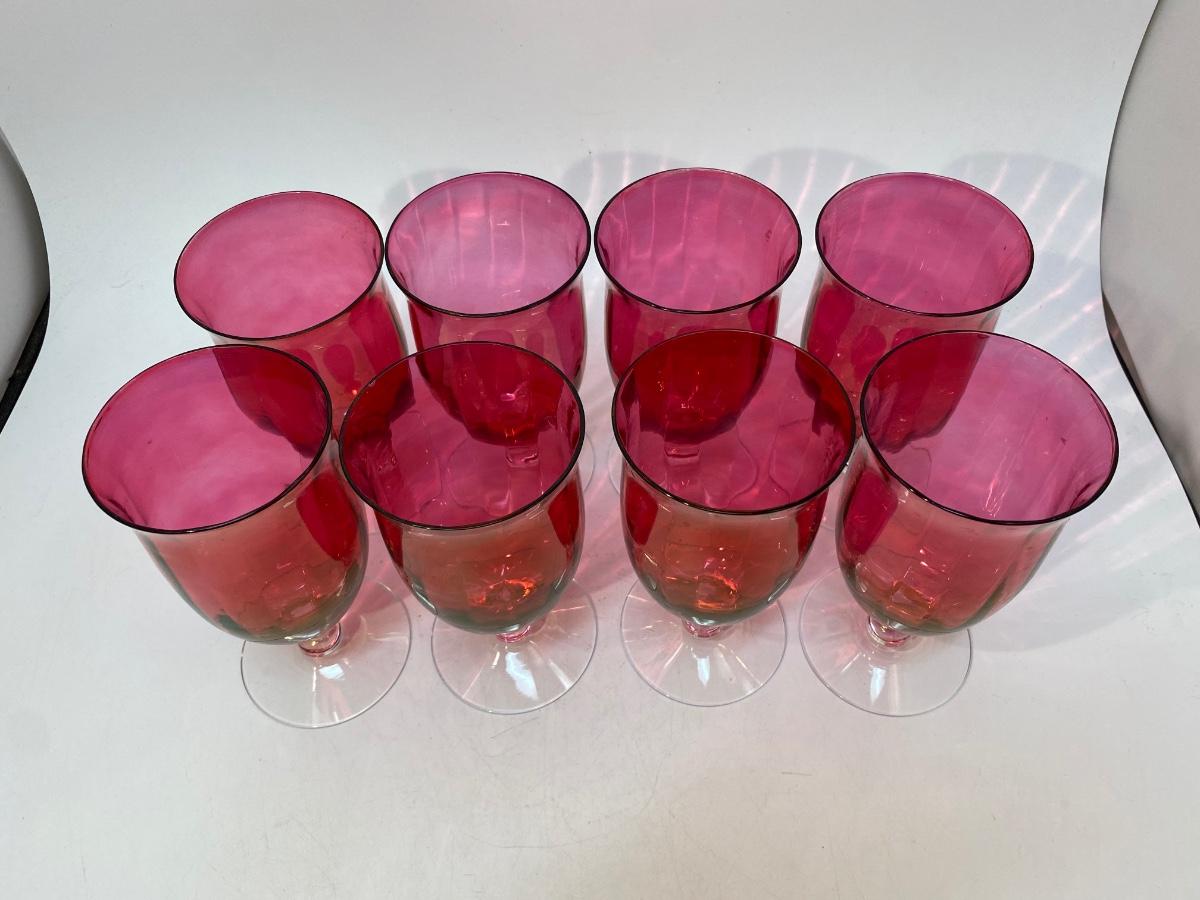 Set of 8 Vintage Cranberry Red Water Goblets Drink Glasses