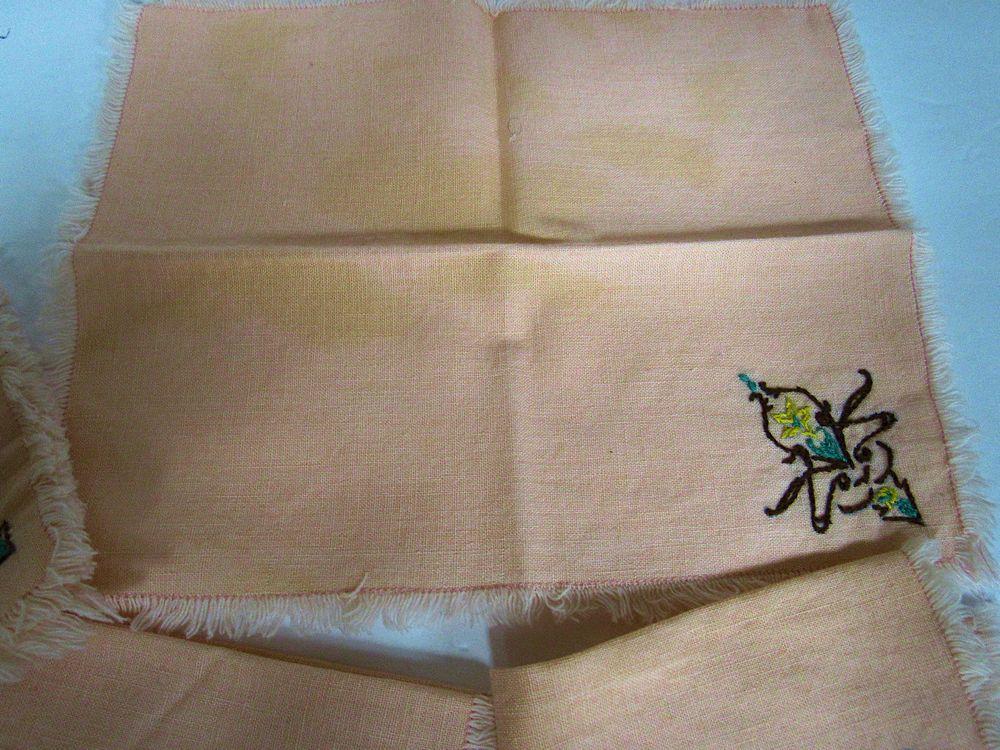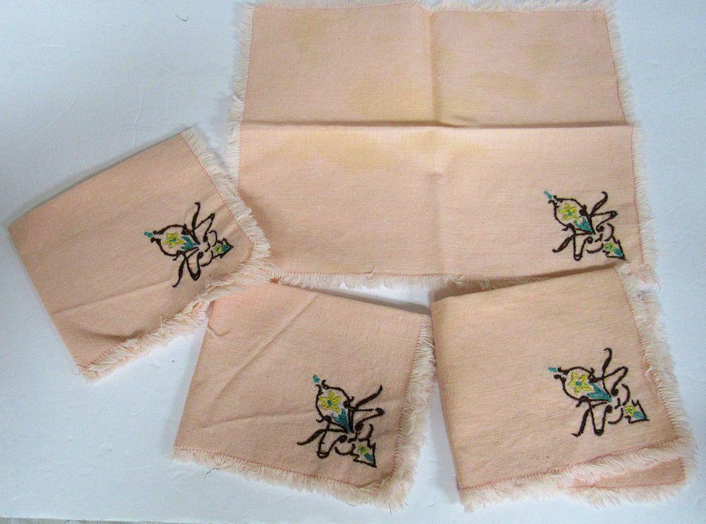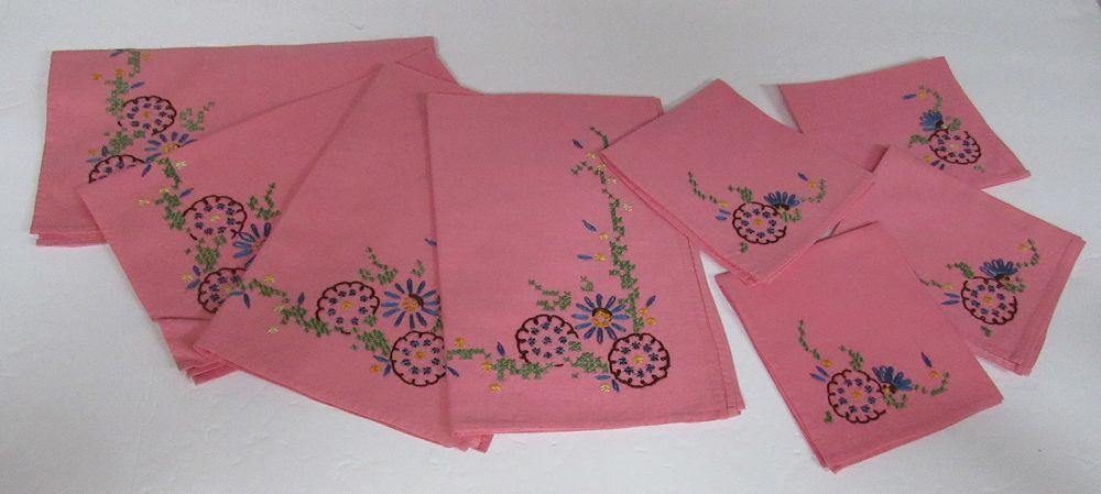 Set of 8 Vintage Fabric Embroidered Placemats and Napkins, and Set of 4 Embroidered Napkins