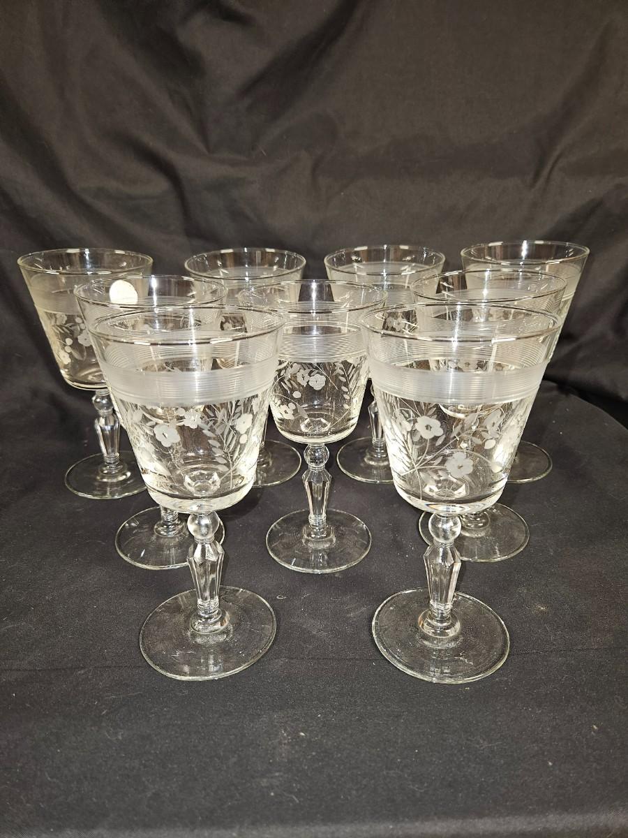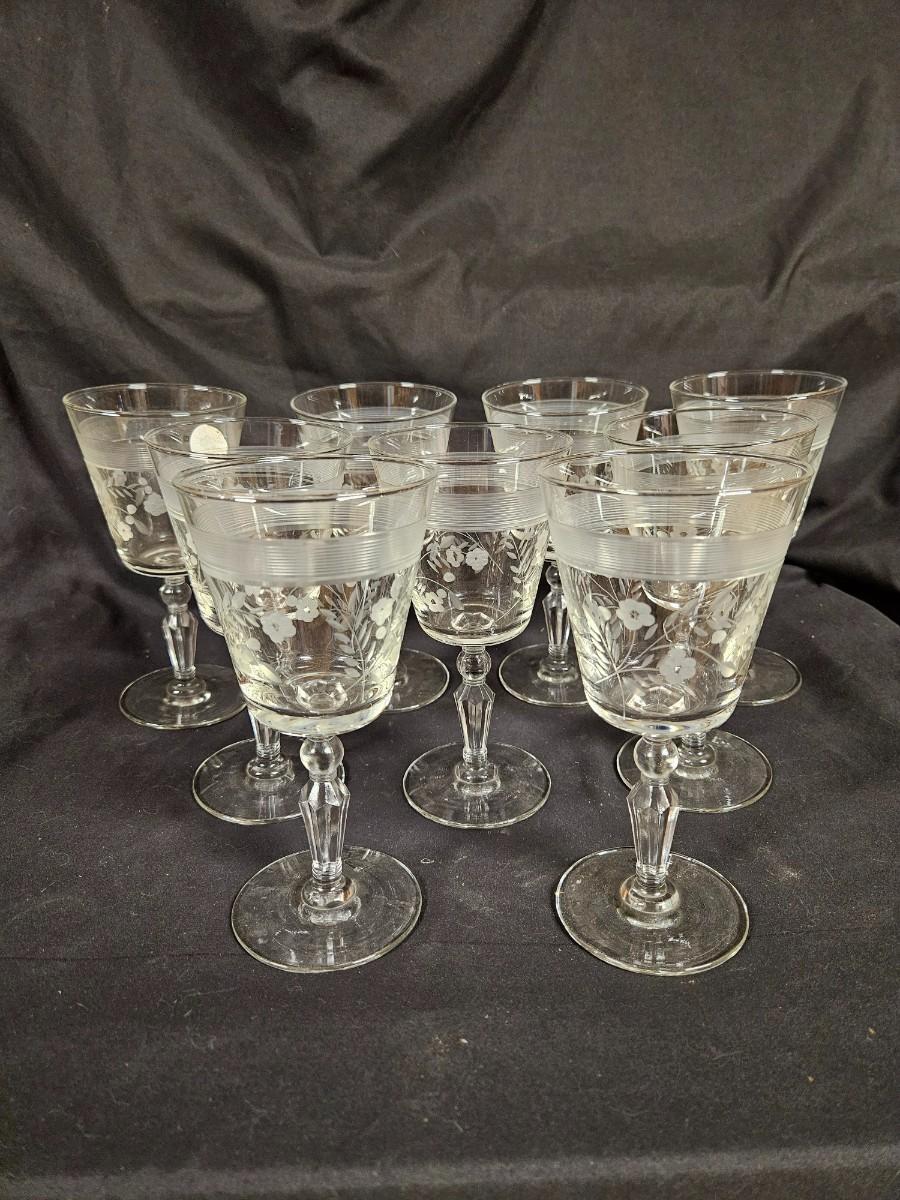 Set of 8 Vintage Libbey Rock Sharpe Crystal Caprice Wine Glasses