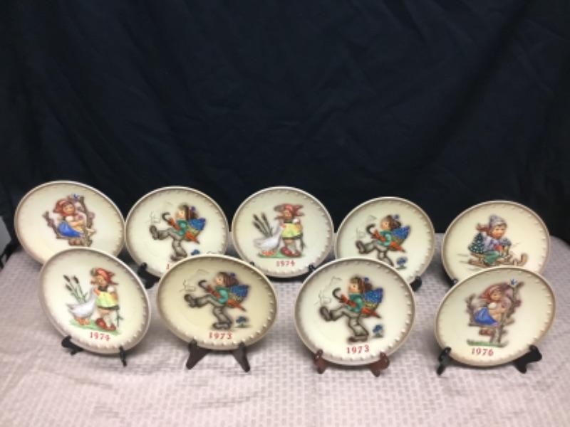 Nine Hummel annual plates. Four 1973 plates, two 1974 plates, one 1975 plate, two 1976 plates