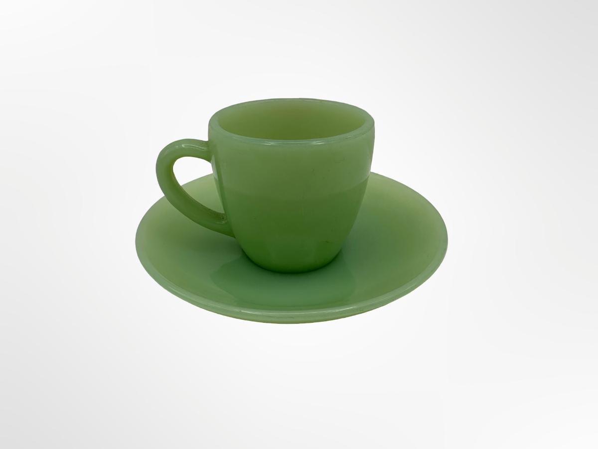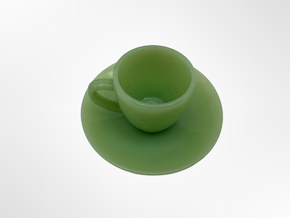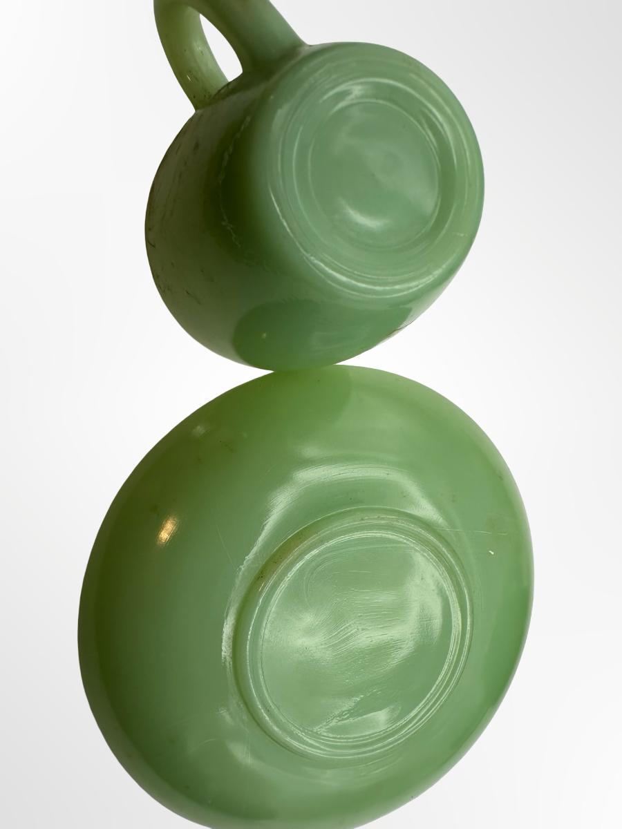 Set of 9 Jadeite Green Glass Demitasse Cups with Saucers
