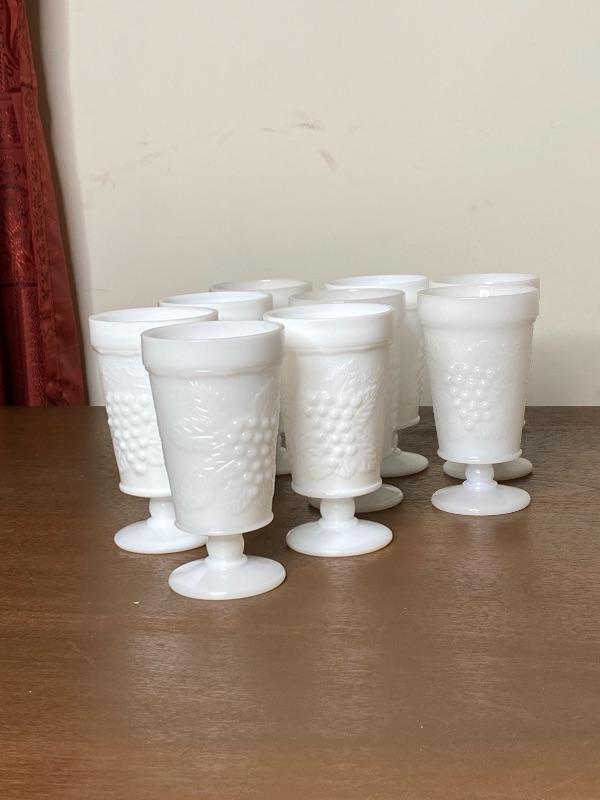 Set of 9 "Grapes" Milk Glass Tumblers