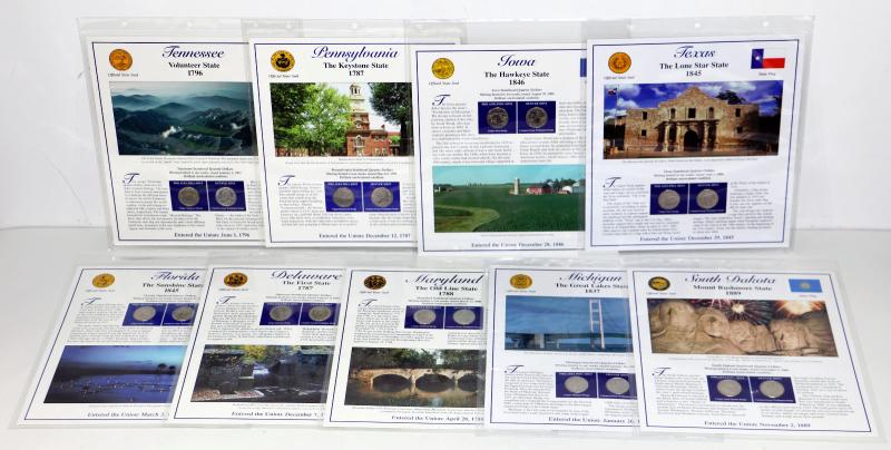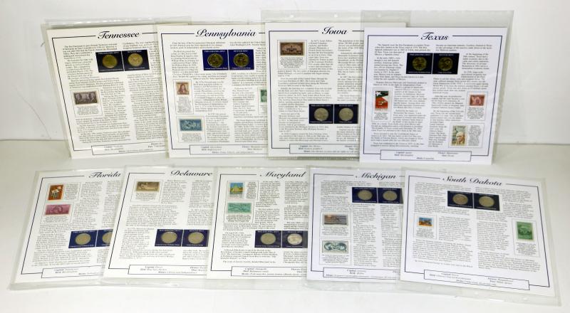 Set of 9 Panels US Statehood Quarters & Stamps Collection.