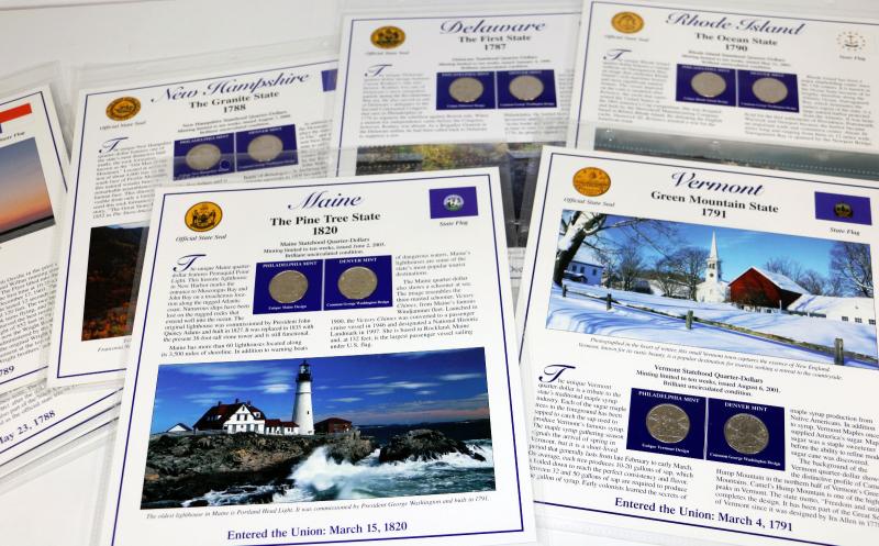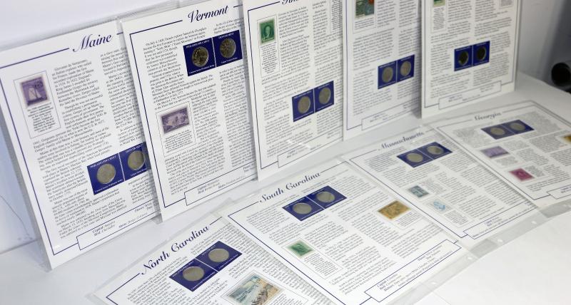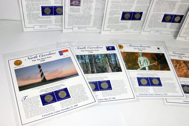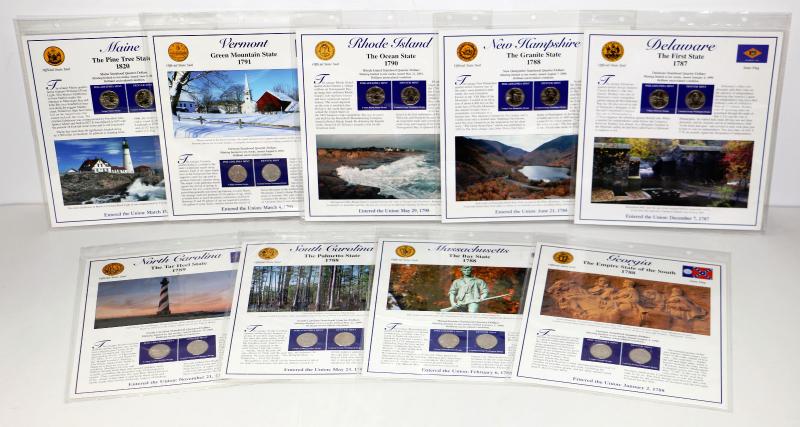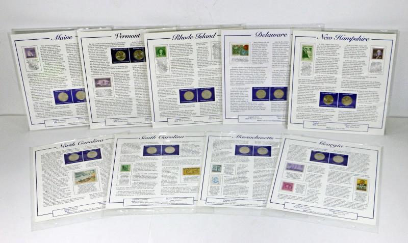 Set of 9 Panels US Statehood Quarters & Stamps Collection.