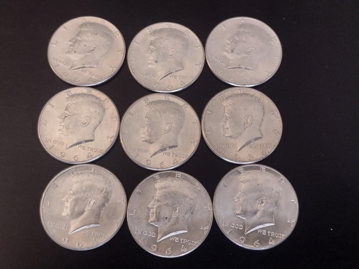 Set of 9 U.S. Mint Kennedy Silver Half Dollar Circulated (#32) 1964