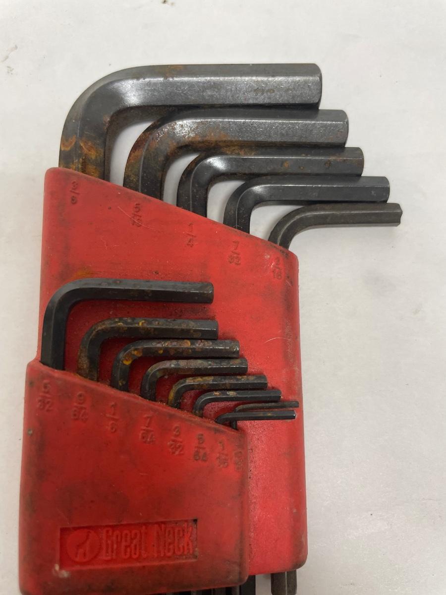 Set of 13 assorted sizes, 1/16 through 3/8. By Great neck Tools. Used condition, a bit of surface rust is visible.