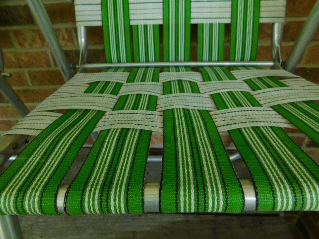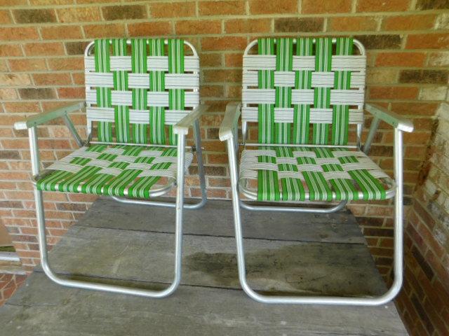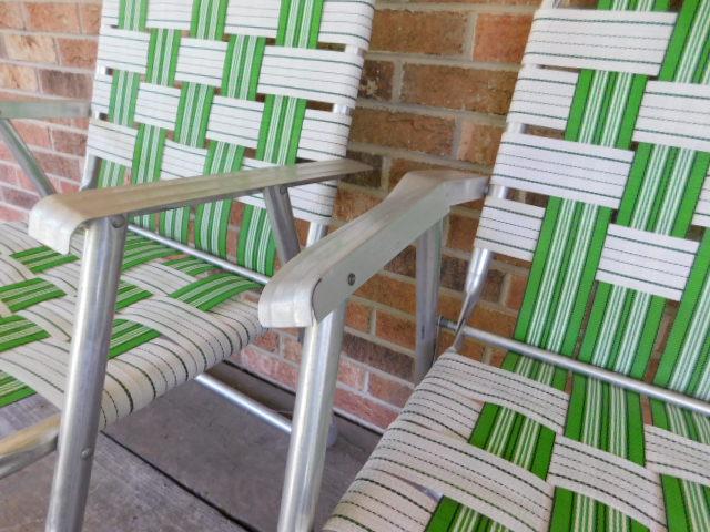 Set of Aluminum Framed Lawn Chairs arm rest has some damage on one of the chairs.