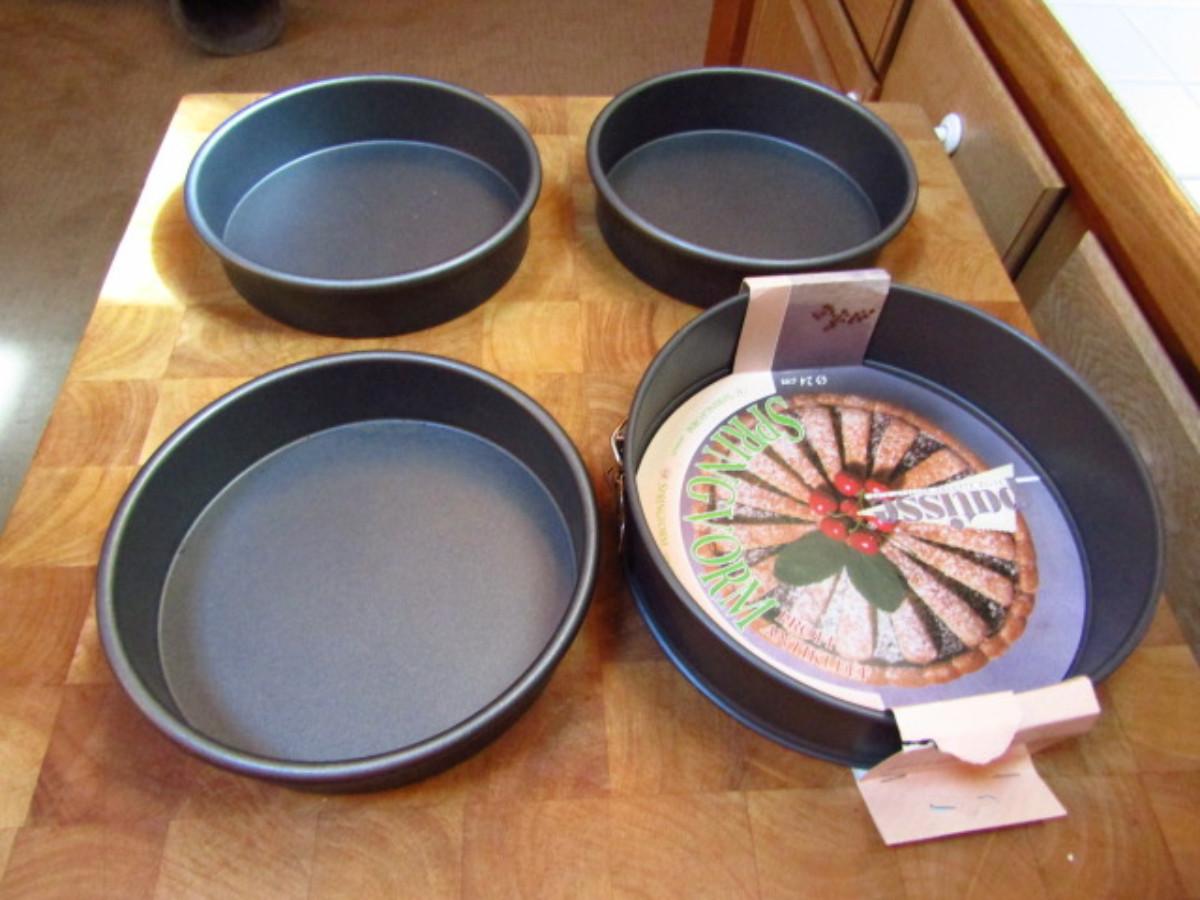 Set of Bake Ware- Three Heavy, Well Made 8" Cake Pans and One 9 1/2" Springform Pan