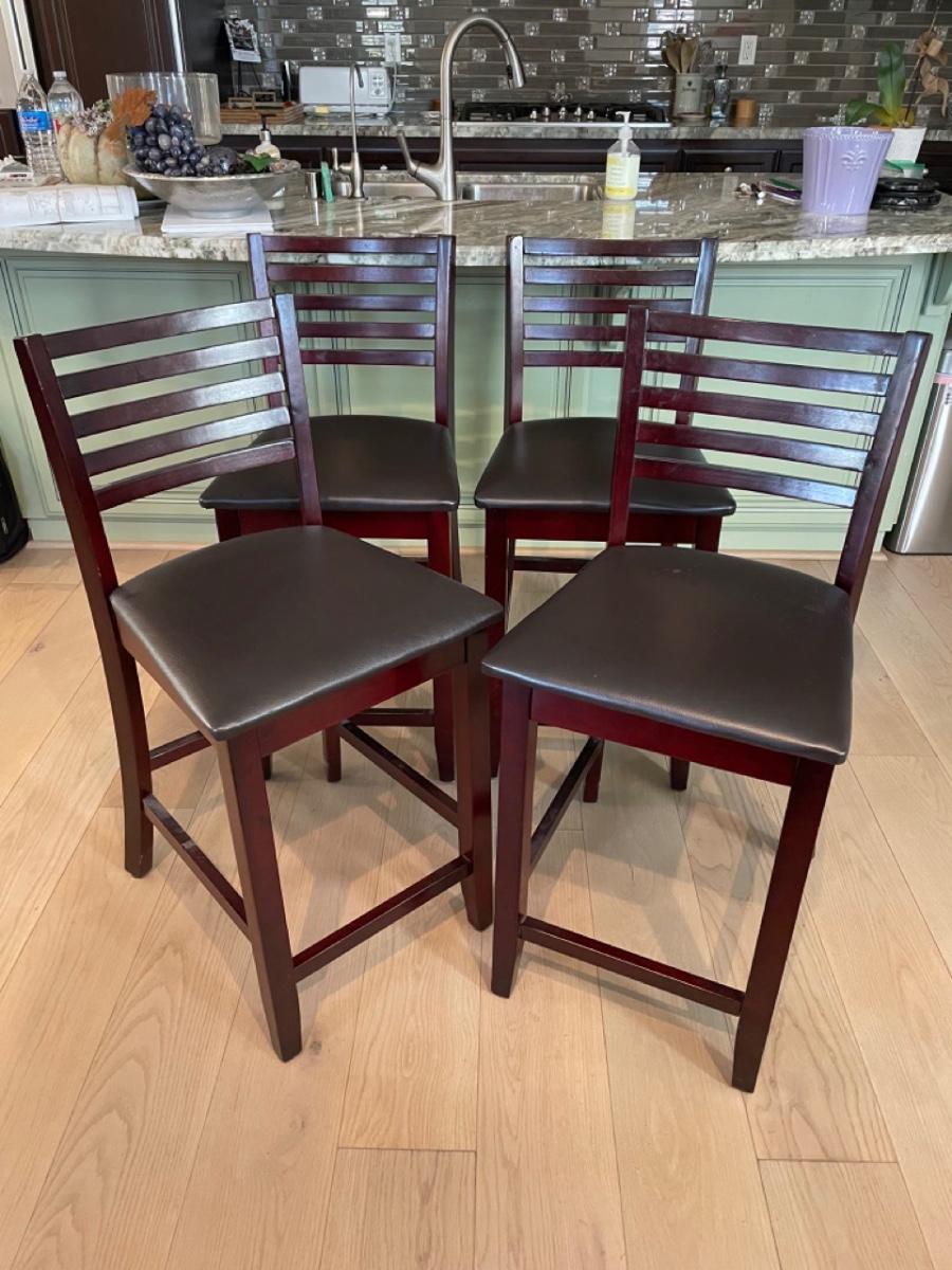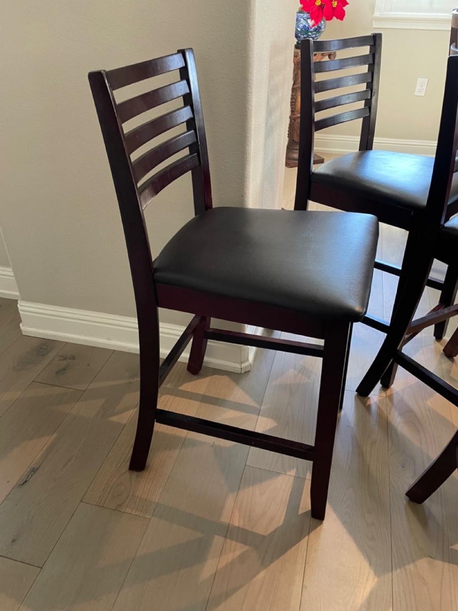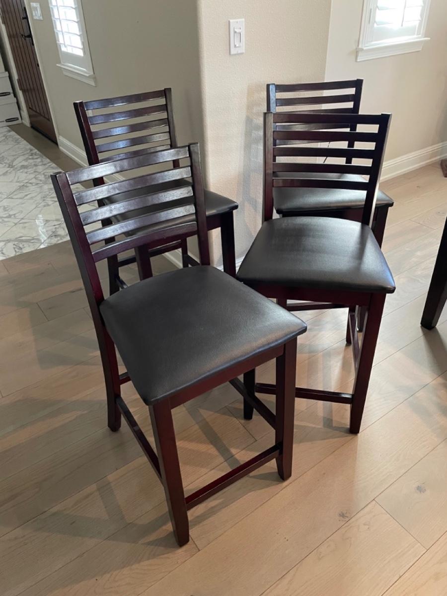 4 counter height stools with black seats. All in good condition. Seat height 24"