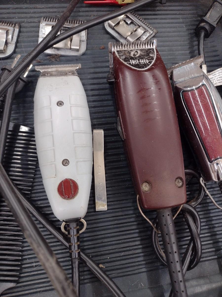 Set of Barber Electric Clippers and Shears Used Condition Mostly Wahl and Oester