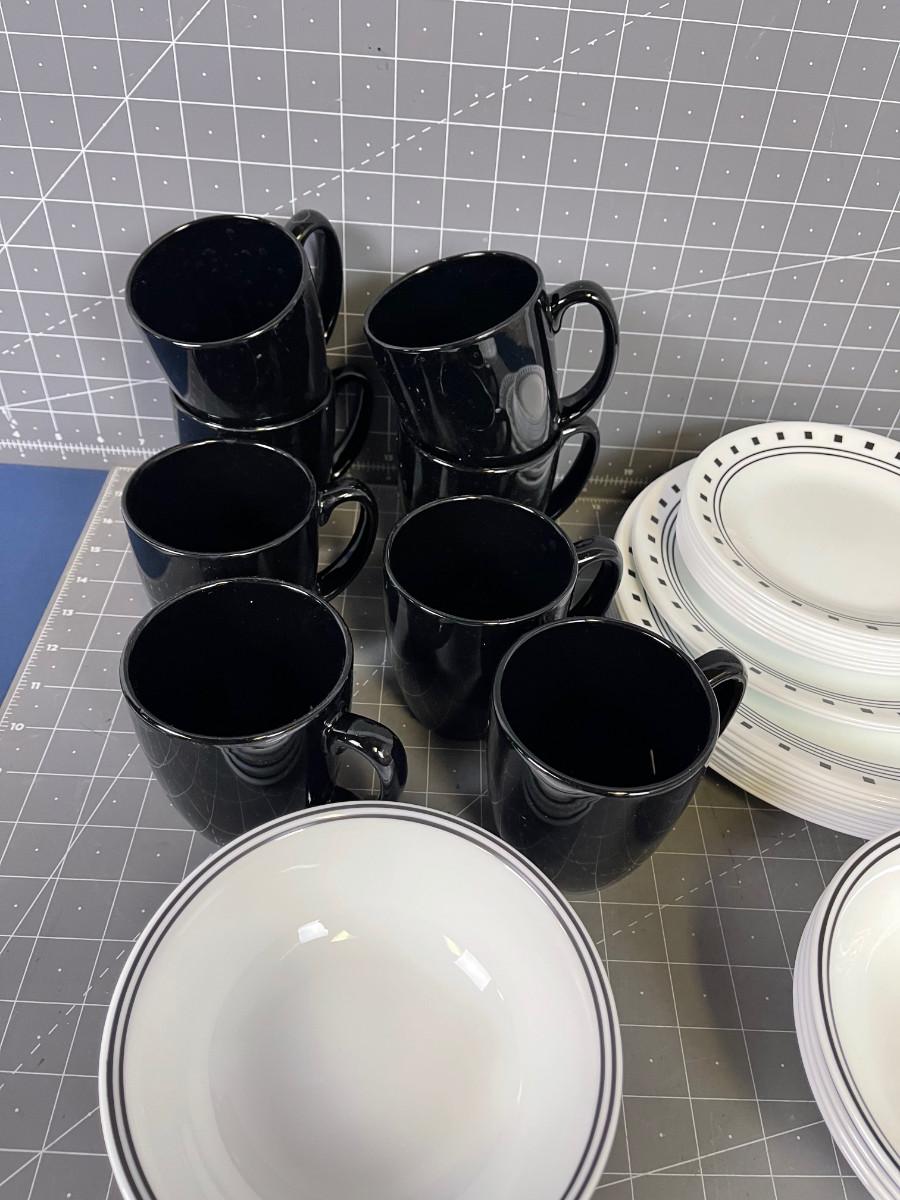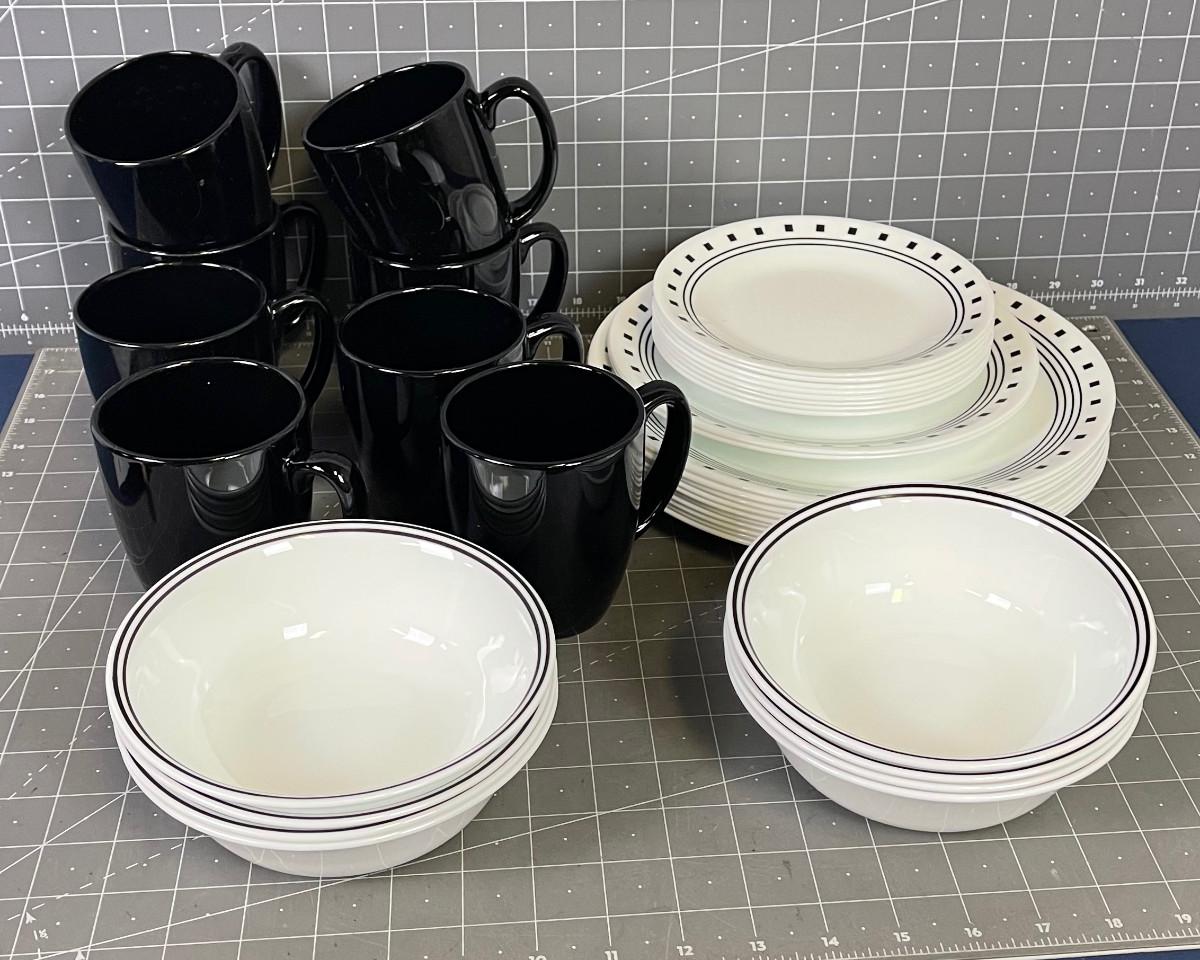 8: Bowls, Plates Cups Missing 6 salad Plates