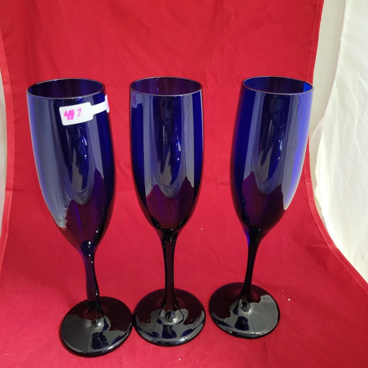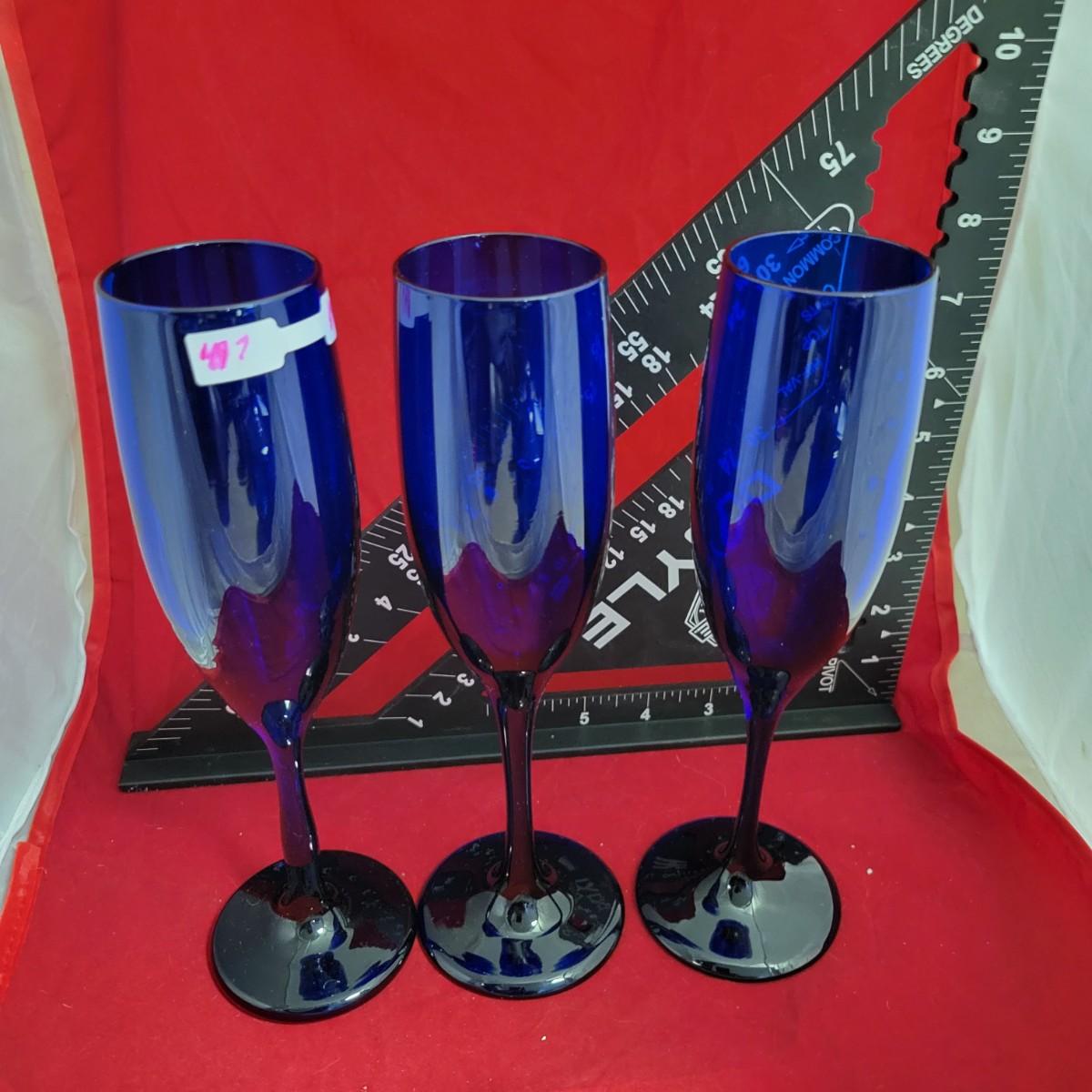 Set of blue glass wine glasses