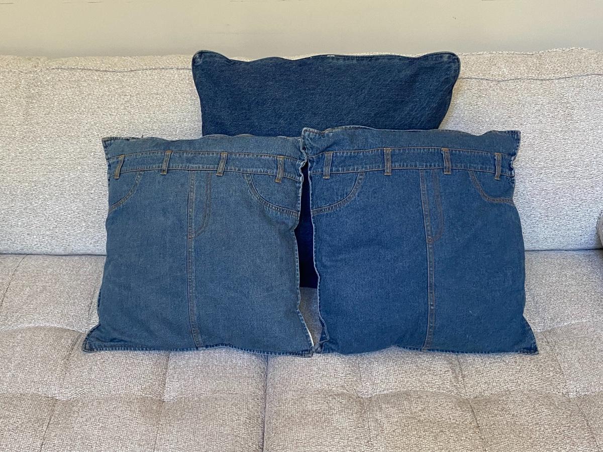 Set of 3 Blue Jean Pillows