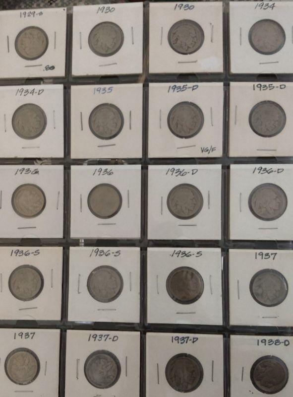 Set of Buffalo Nickel Five Cent Coins Various Dates and Condition Circulated 40 Ct.