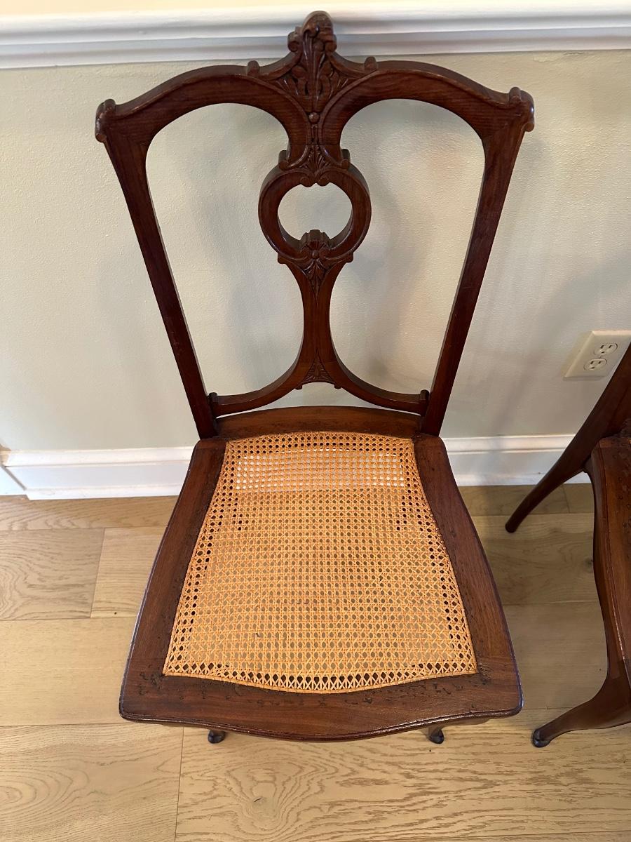 One of the chairs cane will eventually need to be repaired. One seam is becoming loose, pictured.