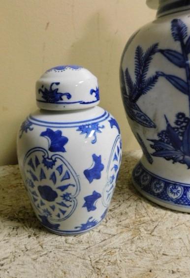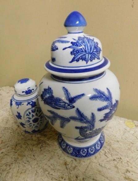 Set of Ceramic Asian Design Blue and White Ginger Jars