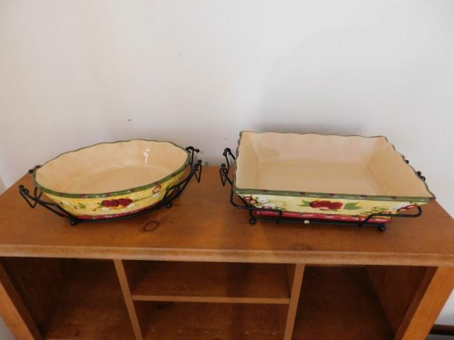 Set of Ceramic Baking Dishes with Metal Trivit Travel Baskets by Temptations