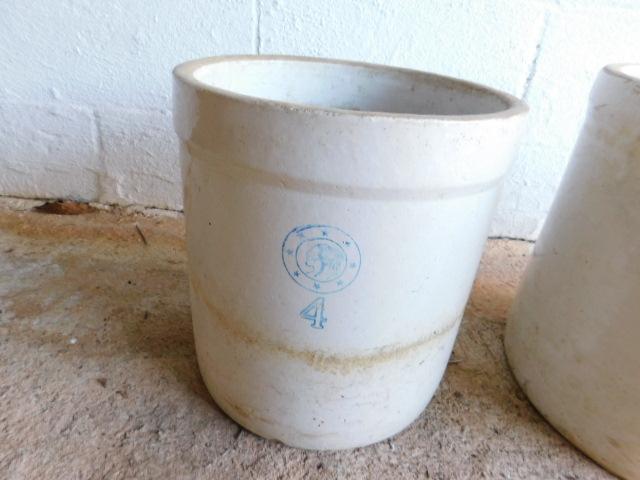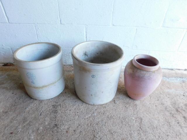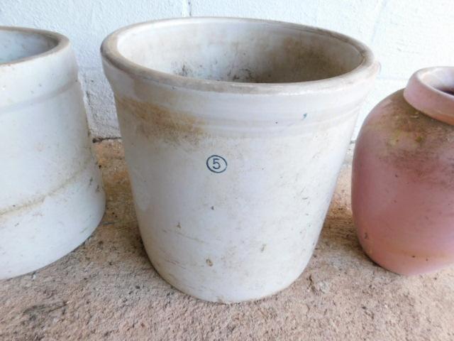 Set of Ceramic Crocks and Floor Vase #4 and #5 some hairline cracks as shown