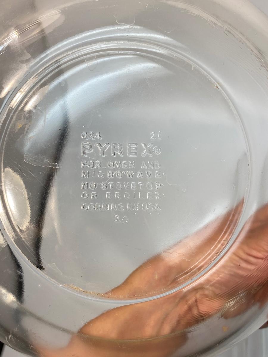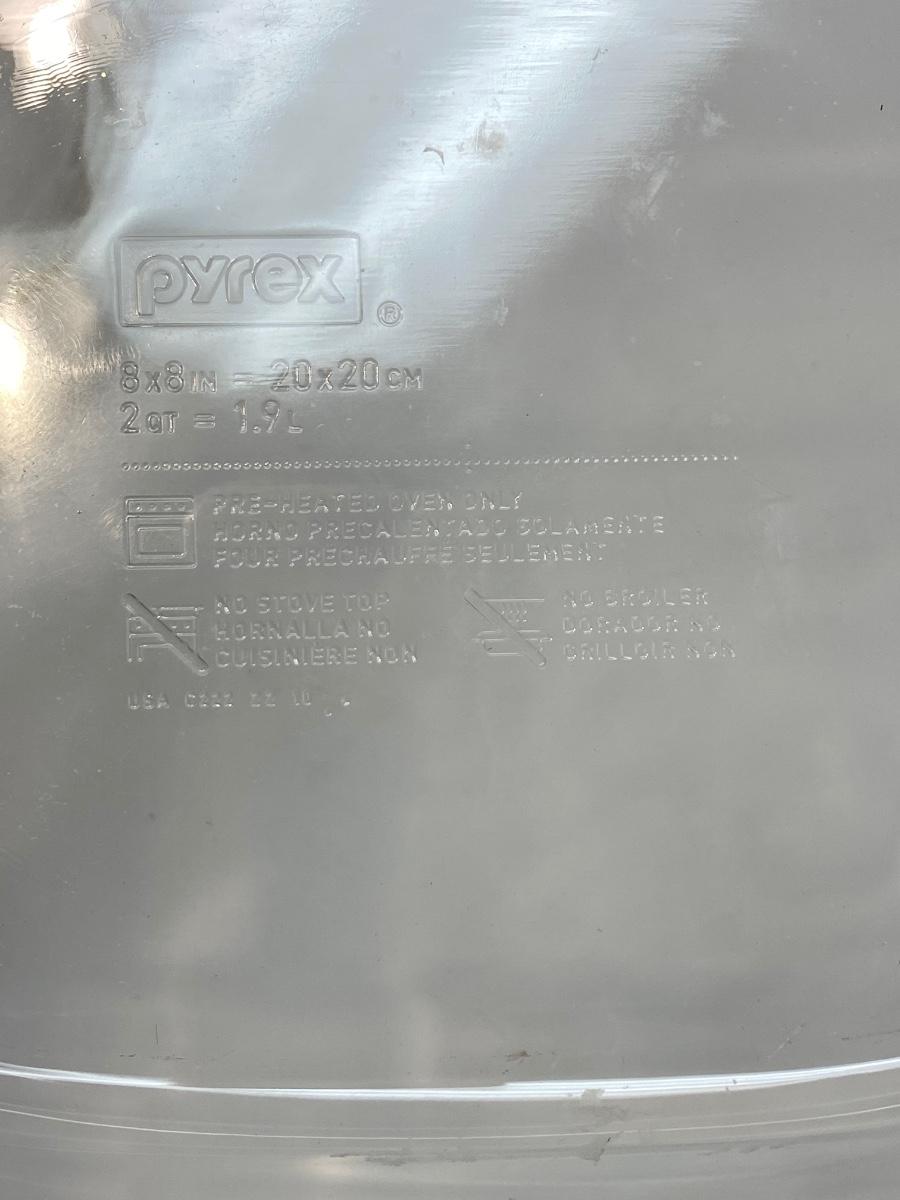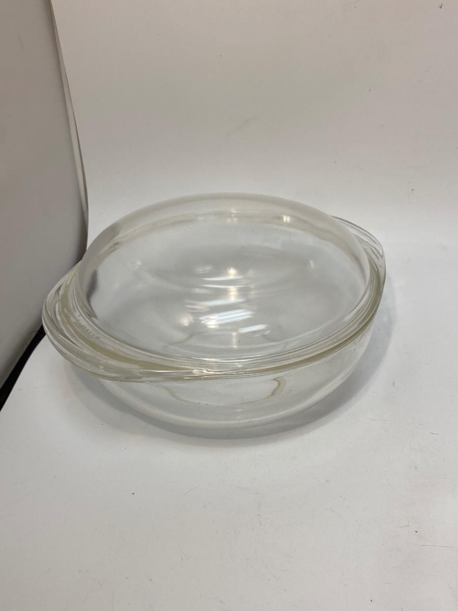 Set of Clear Pyrex Bakeware Casserole Dishes. One square, one round with lid. Good condition.