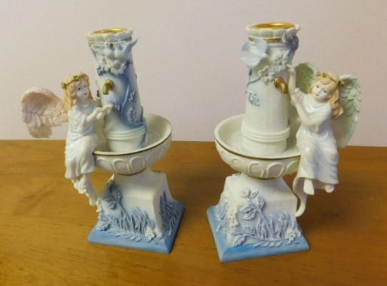 Set of Composite Angel Candle Holders Sandra Kuck's Gift of Peace Candlestick 7"