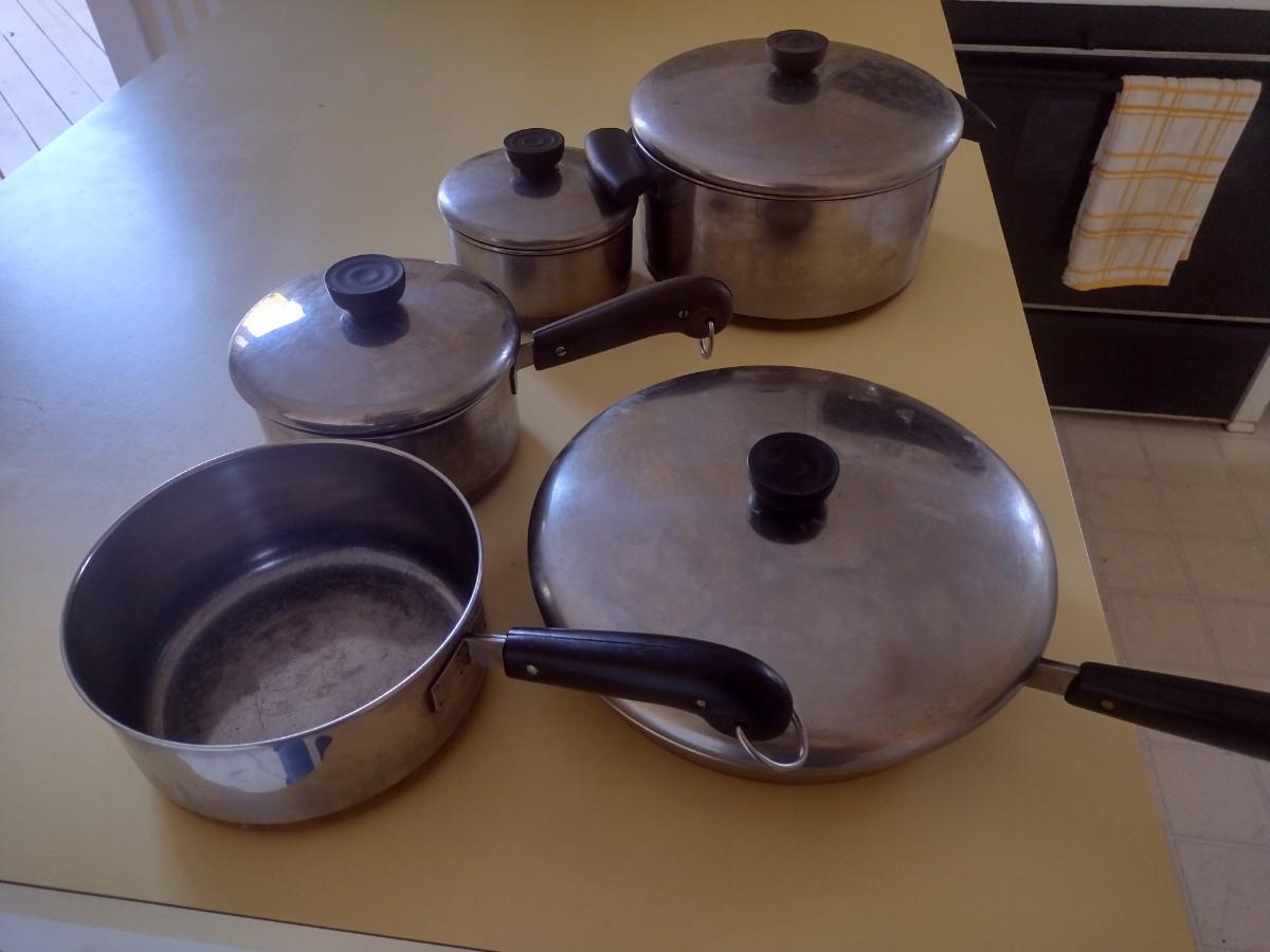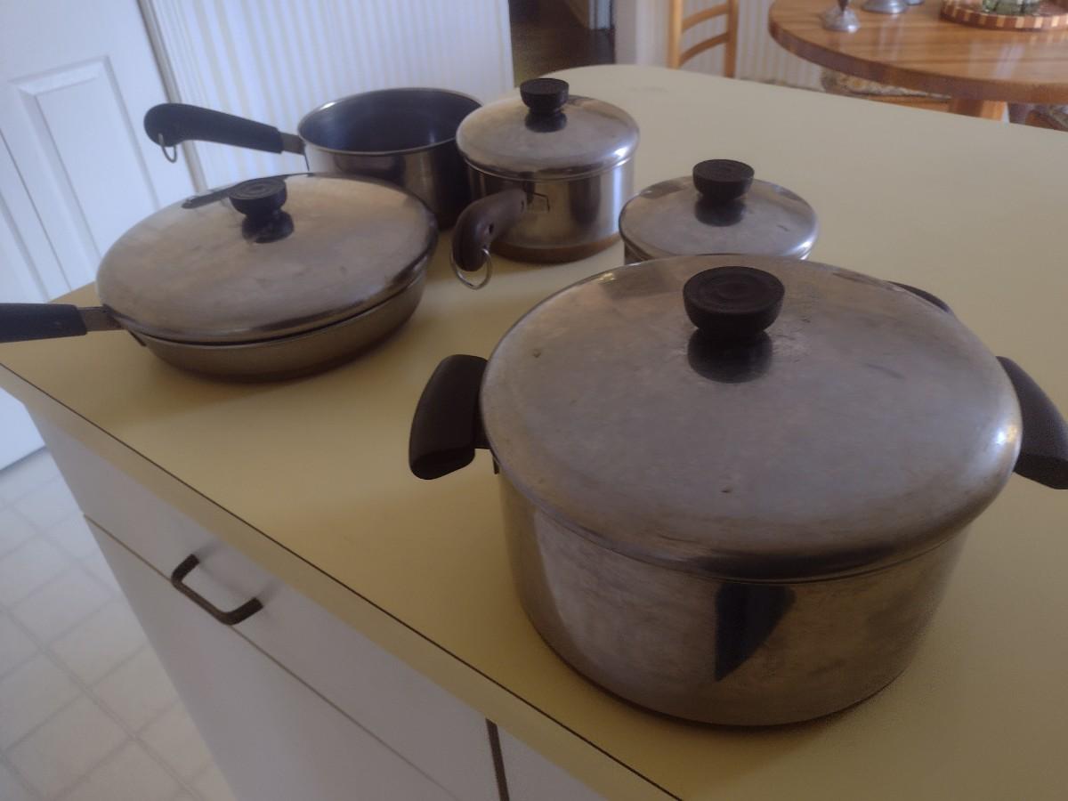 Set of Copper Bottom Revere Ware Pots and Pans