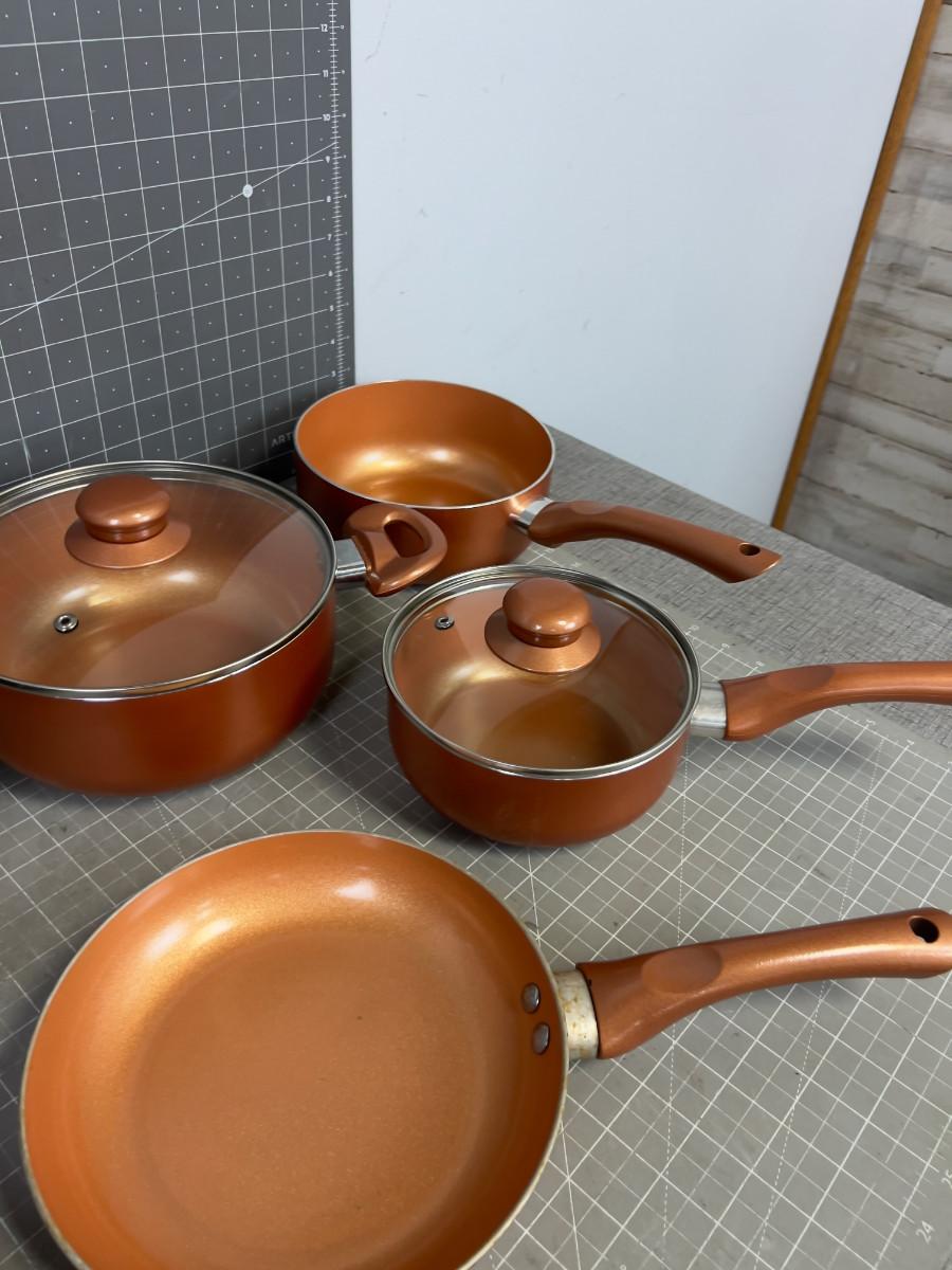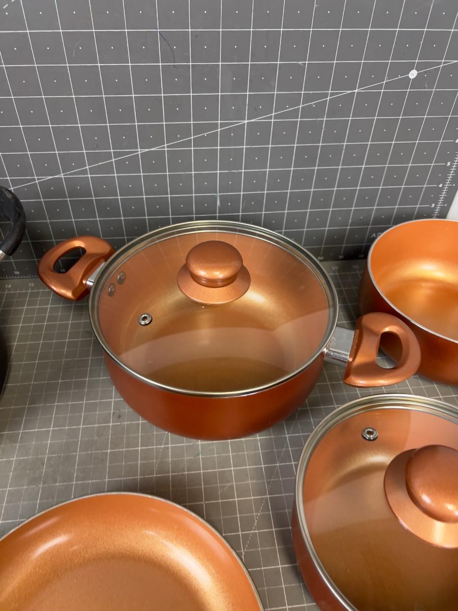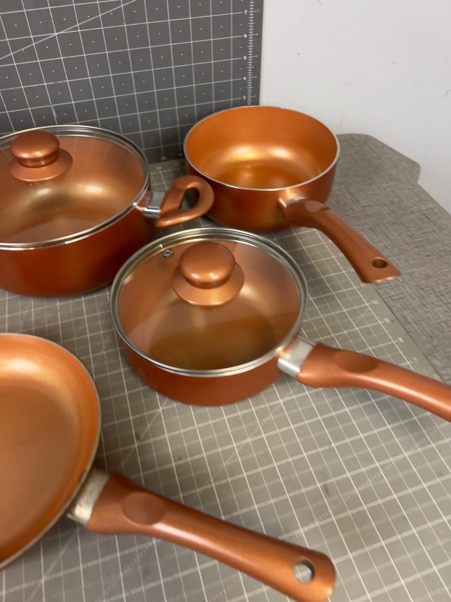Set of Copper Colored Pots and Pans