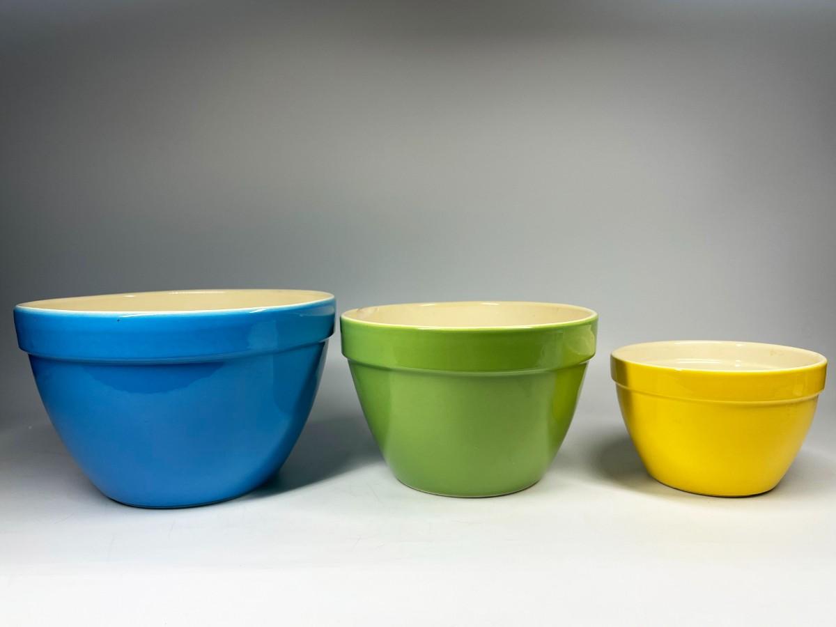 Set of Crate & Barrel Made in Portugal Colorful Ceramic Mixing Bowls