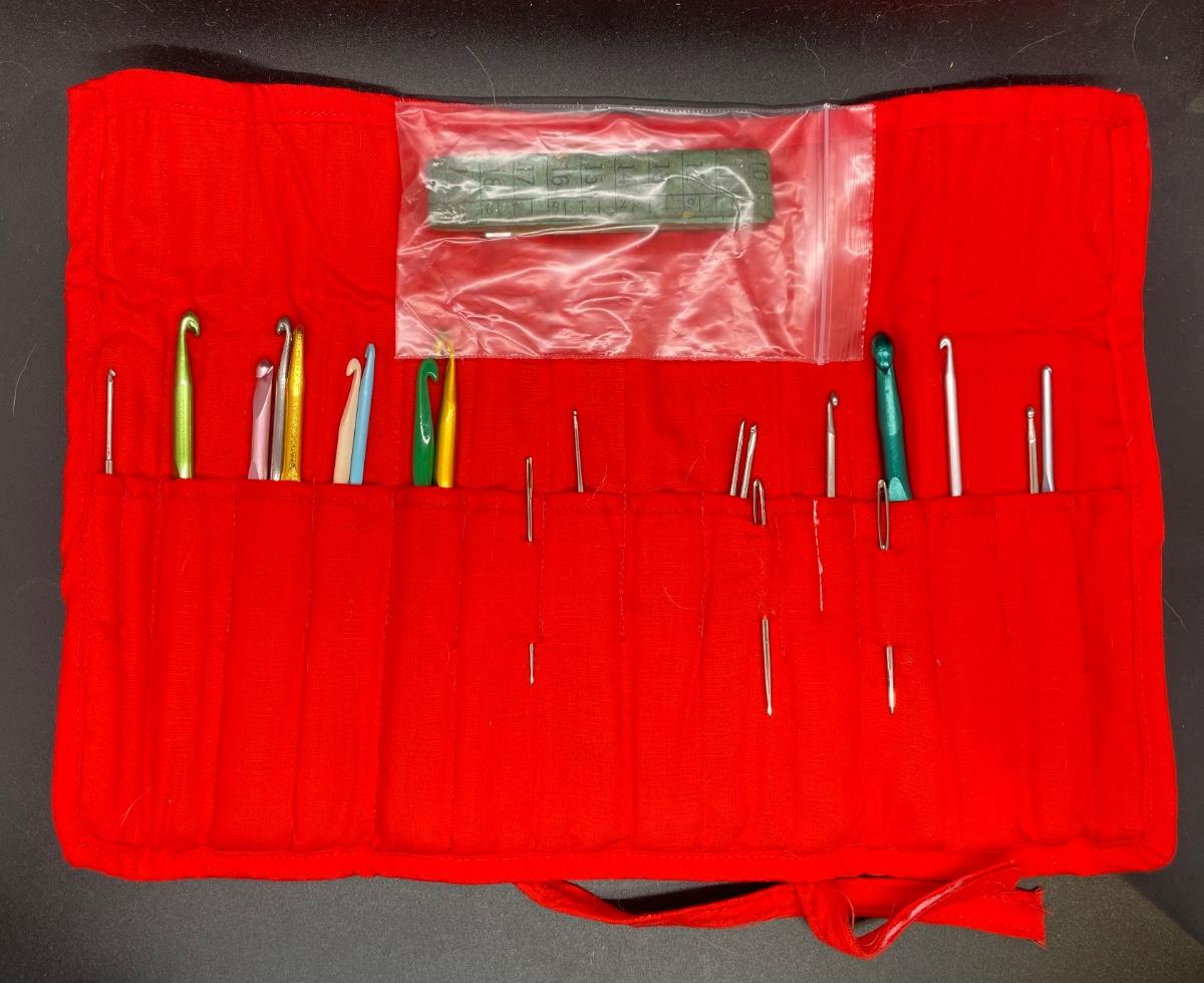 Mixed lot of Crochet Hooks w Carry Pouch and Vintage Measuring Tape