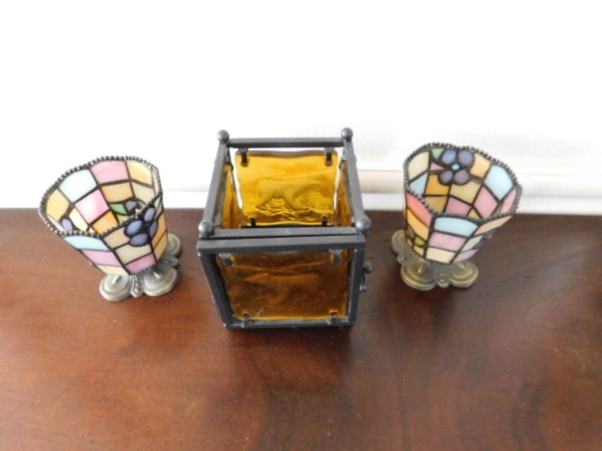 Set of Decorative Tea Light Lanterns includes Partylite and Glass Bear