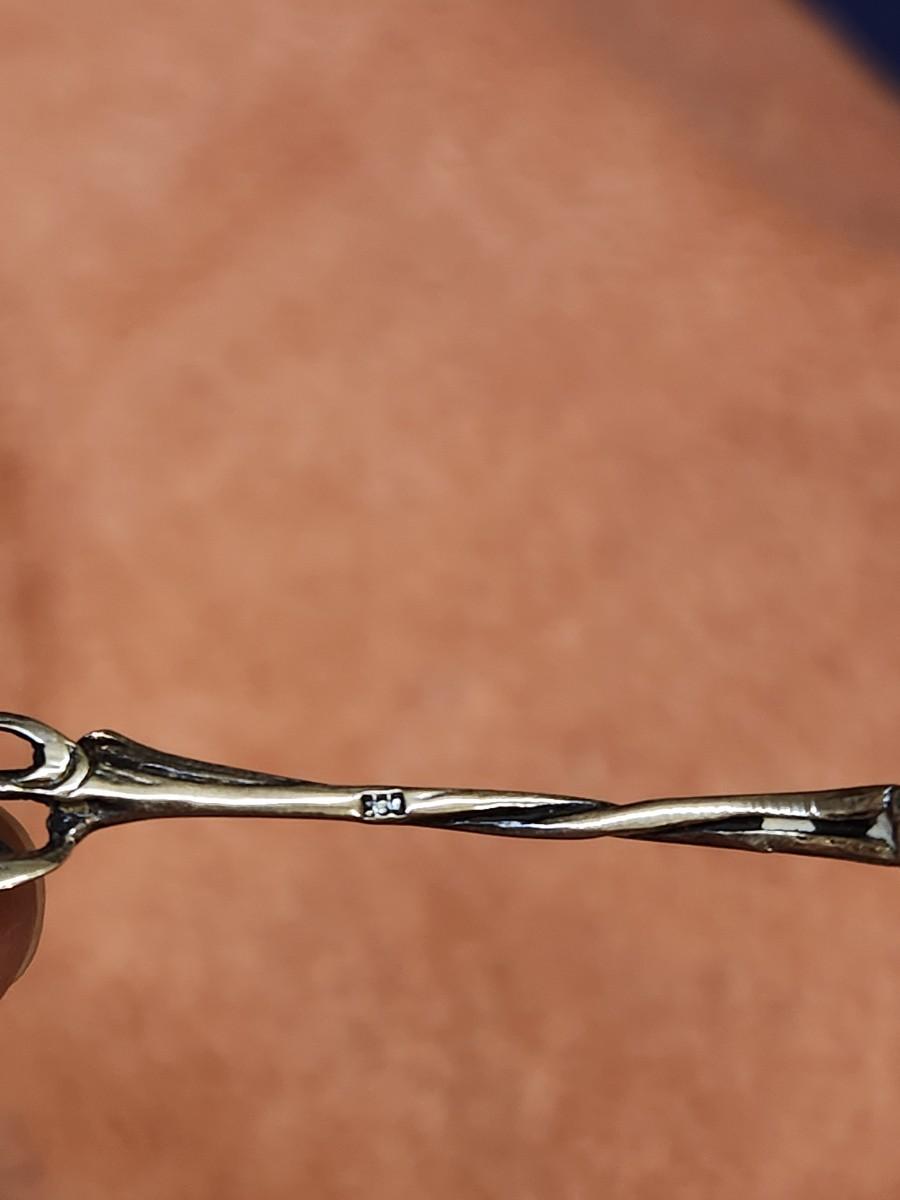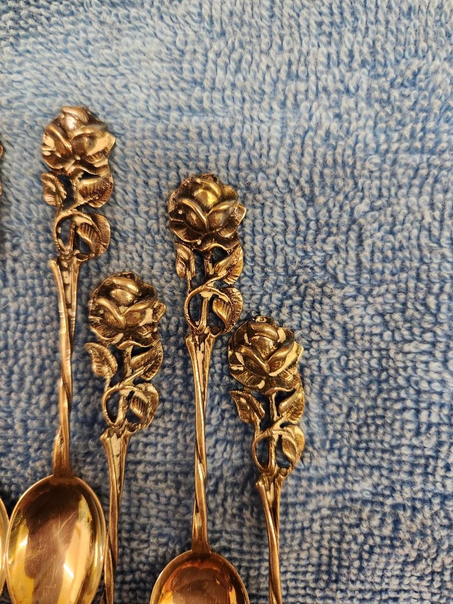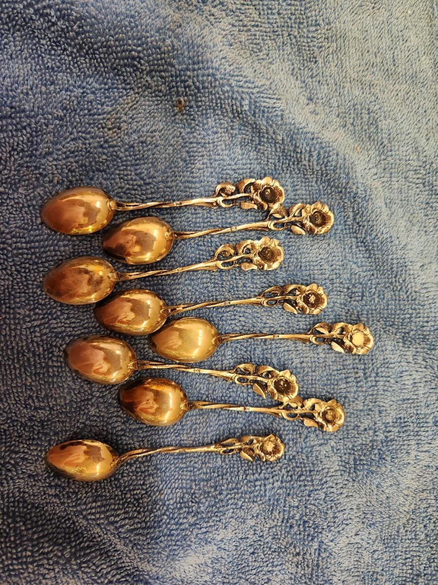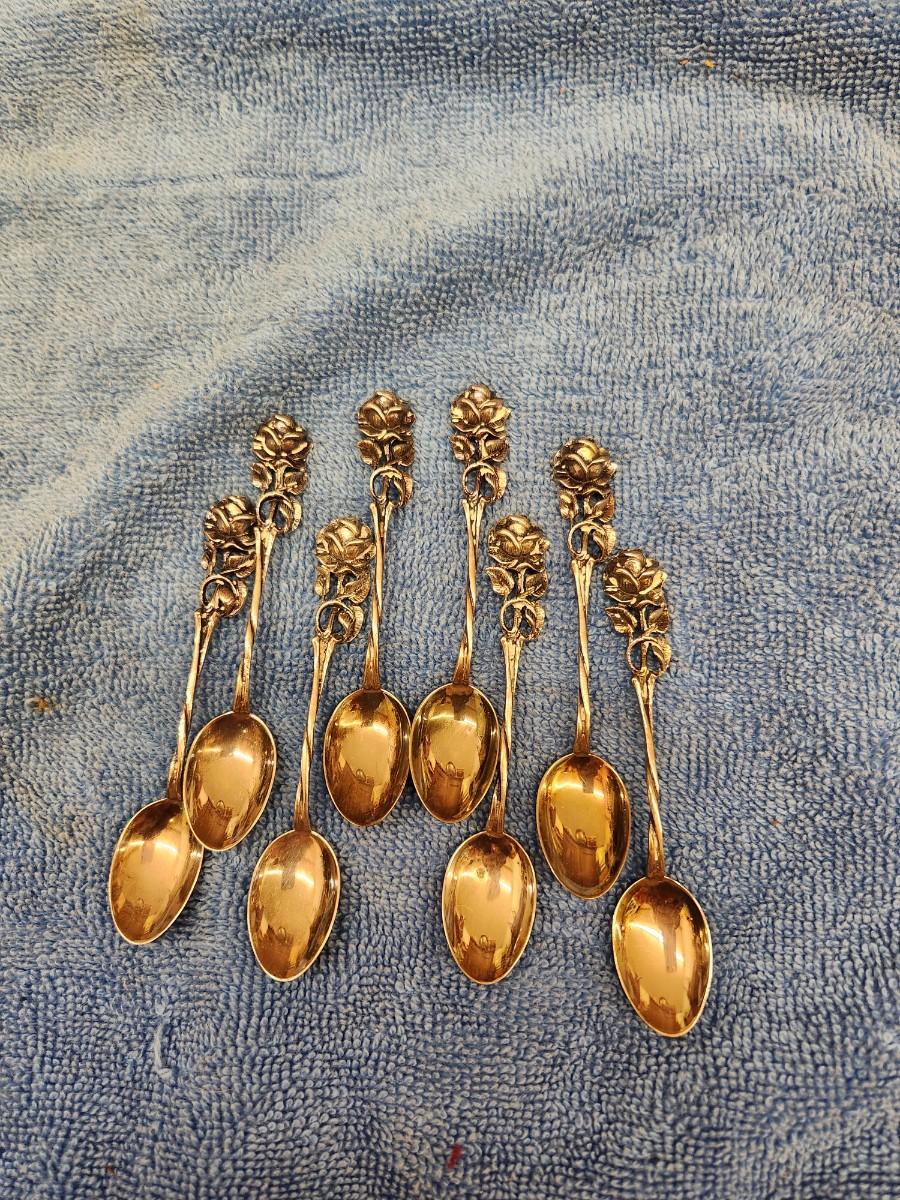 8 dainty demitasse spoons with twisted handle ending in a rose.