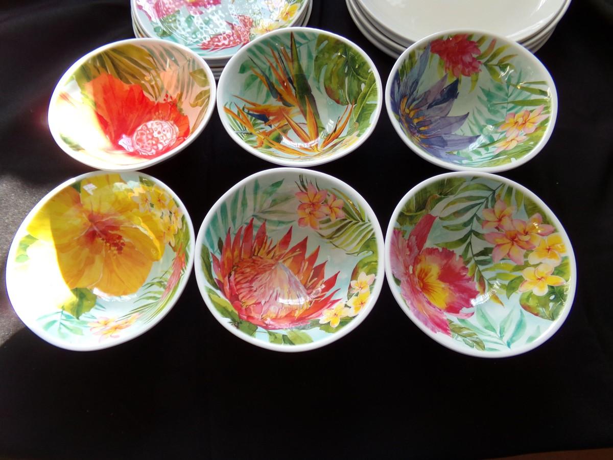 SET OF DISHES; 6 BOWLS, 6 PLATES, 4 LARGE PLATES.