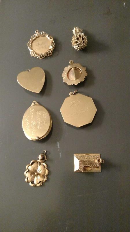 Set of Eight 14kt Gold Charms most have been engraved on back.