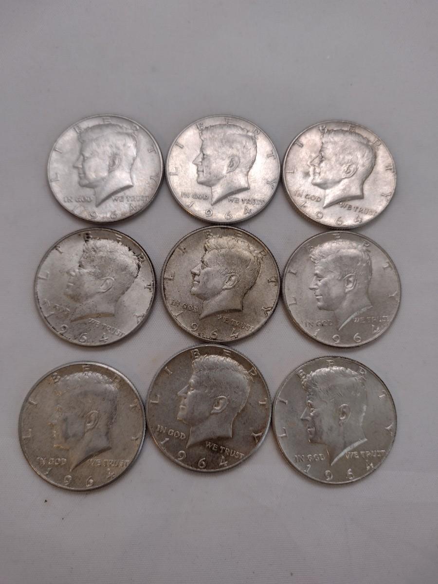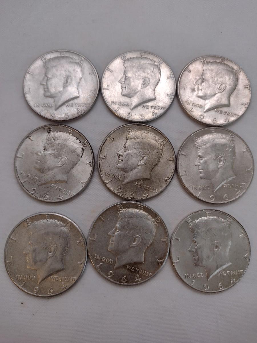 Set of Eight 1964 Silver Kennedy Half-Dollars Circulated #264