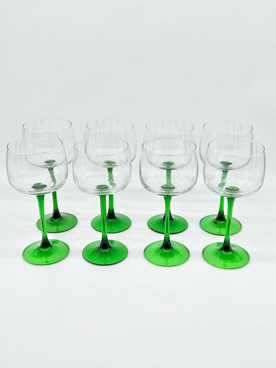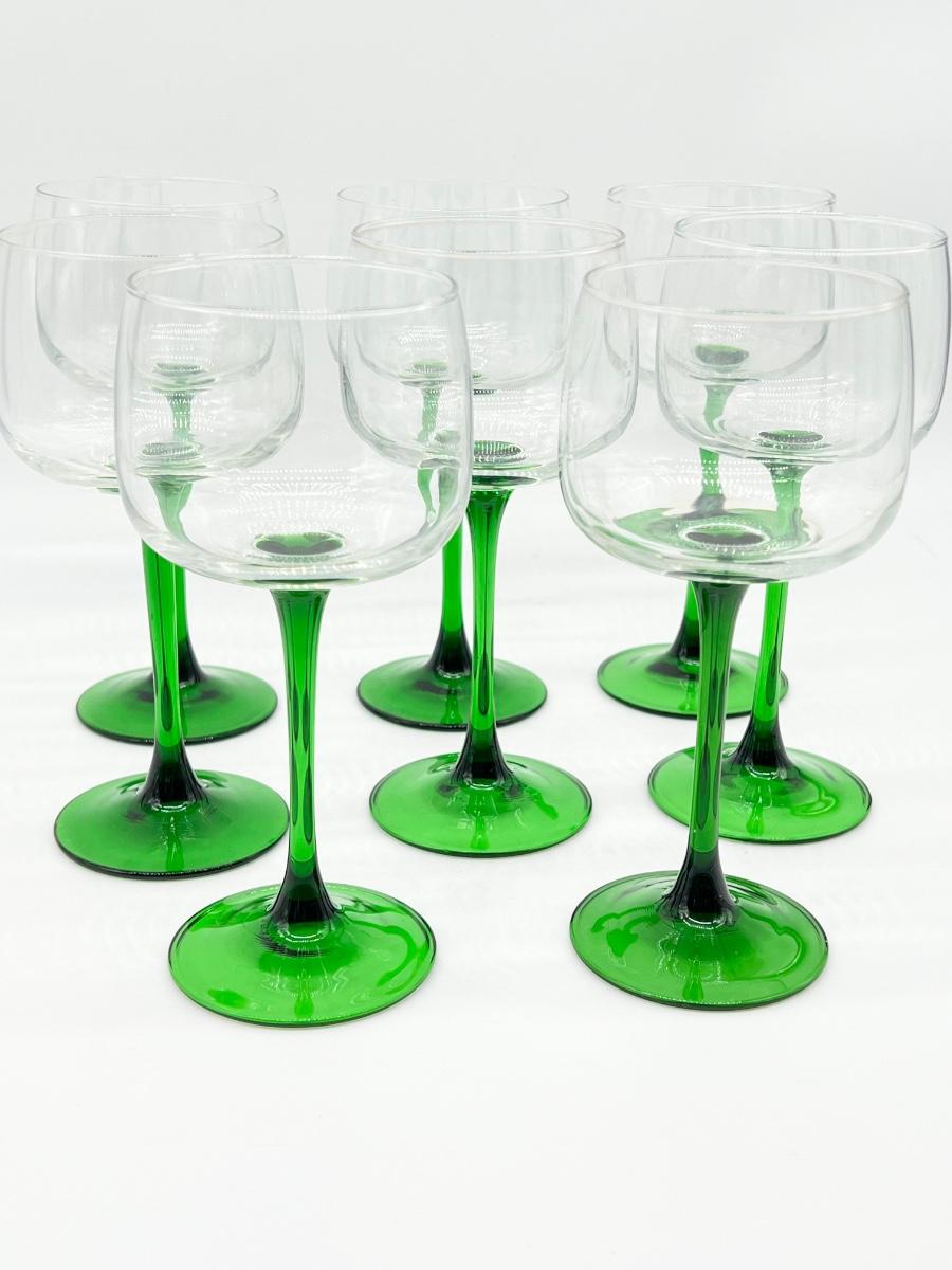 LUMINARC ~ Set Of Eight (8) Emerald Green Stem Wine Glasses