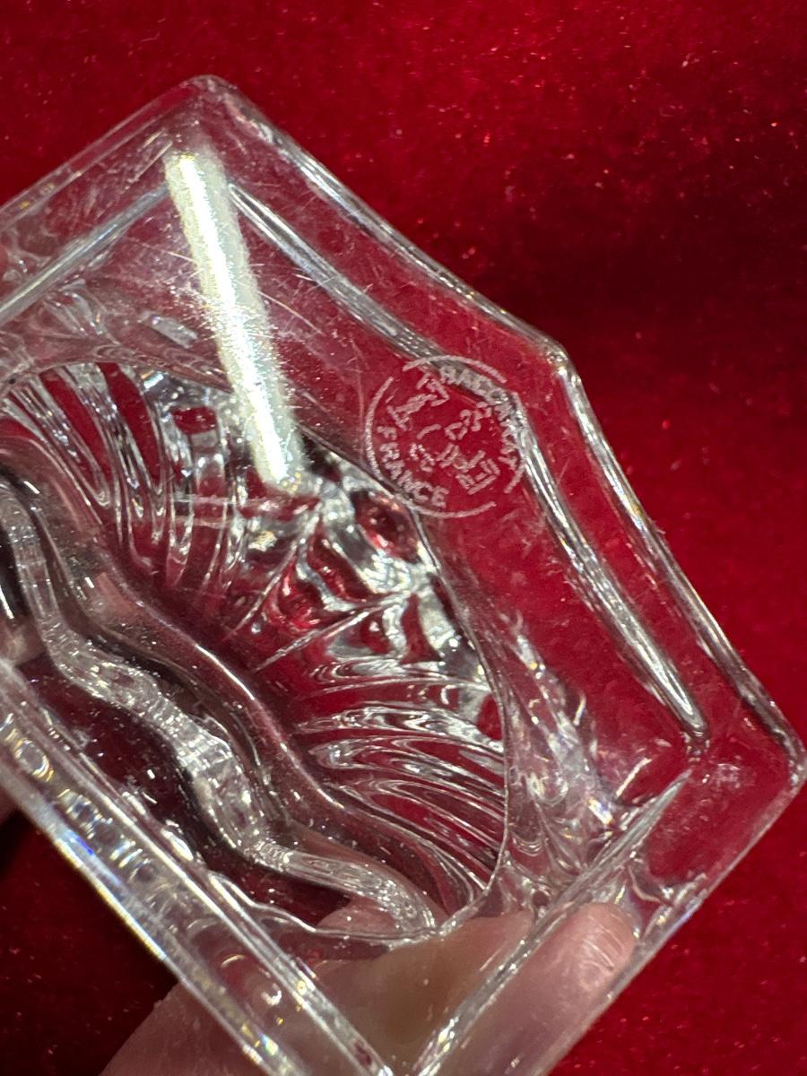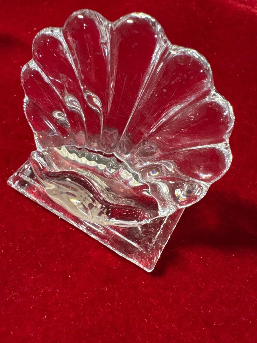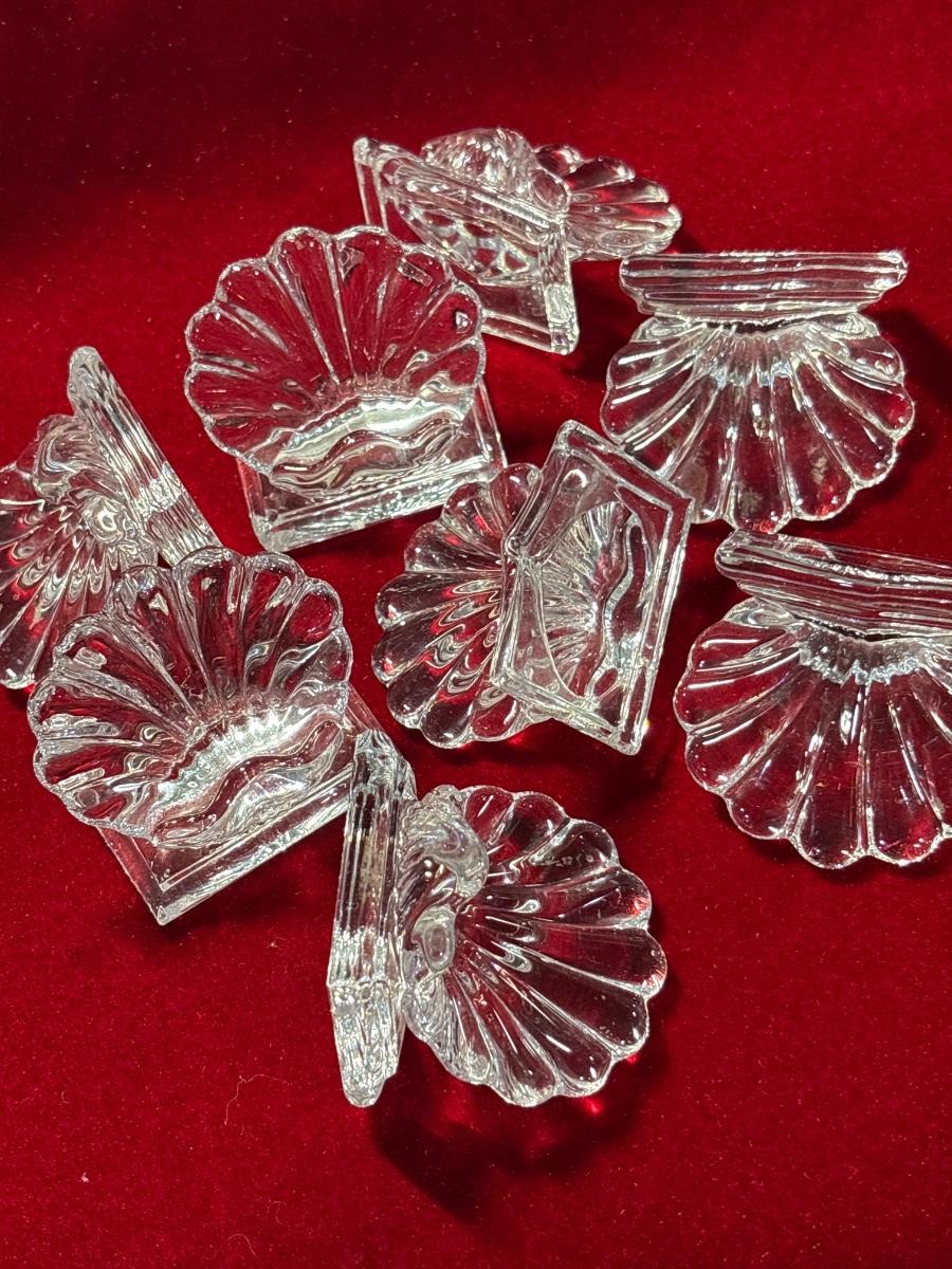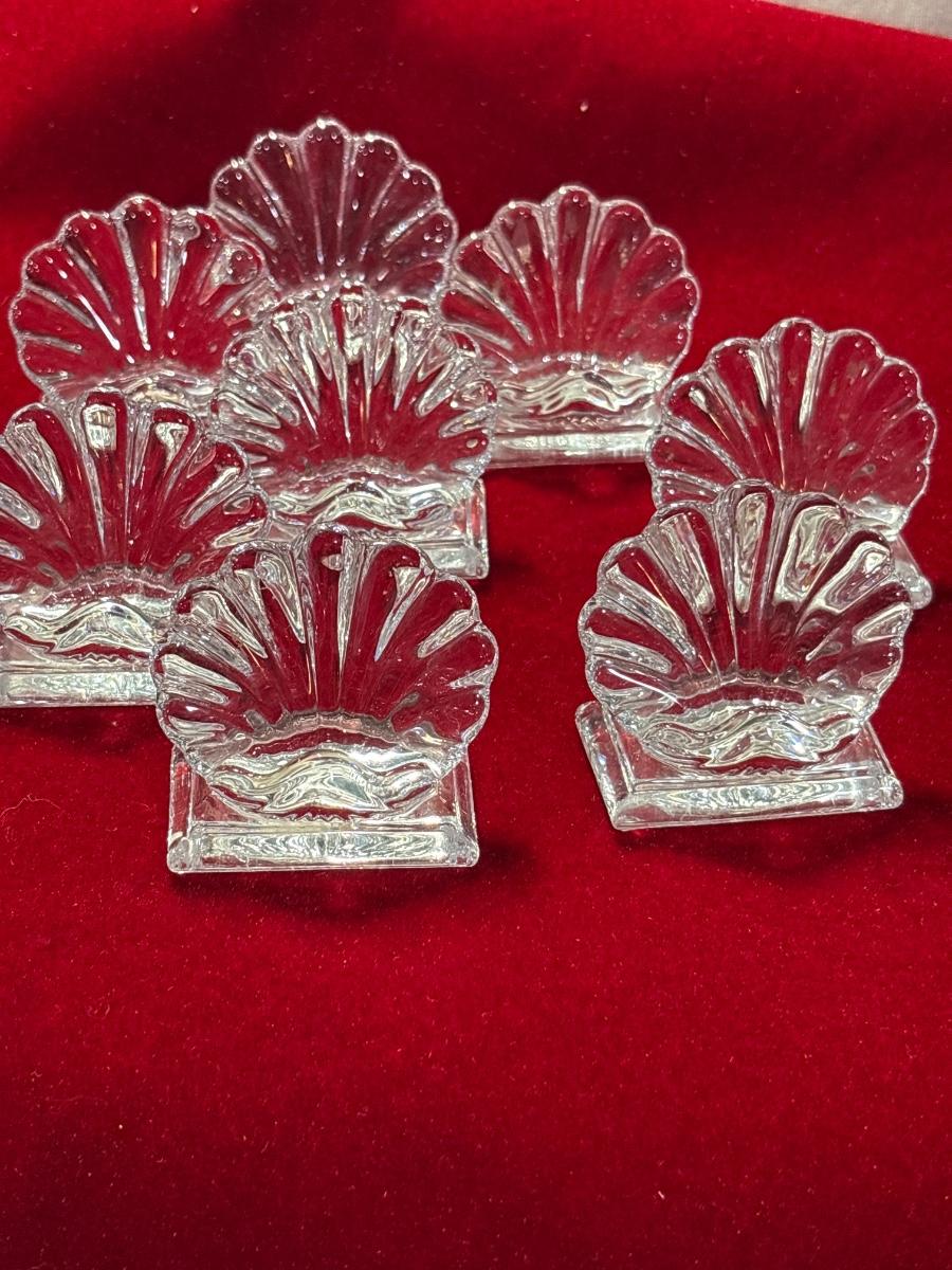 Wow! Set of eight signed Baccarat place card holders. France. 1.5” x 2” base, 2” H to the fan like back.