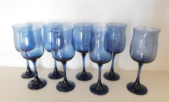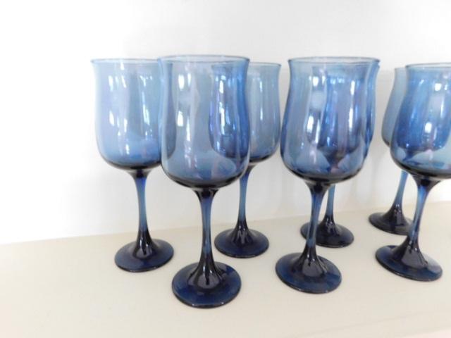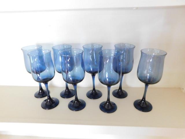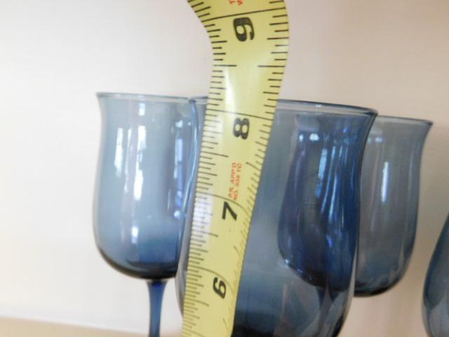 Set of Eight Blue Long Stemmed Drinking Glasses
