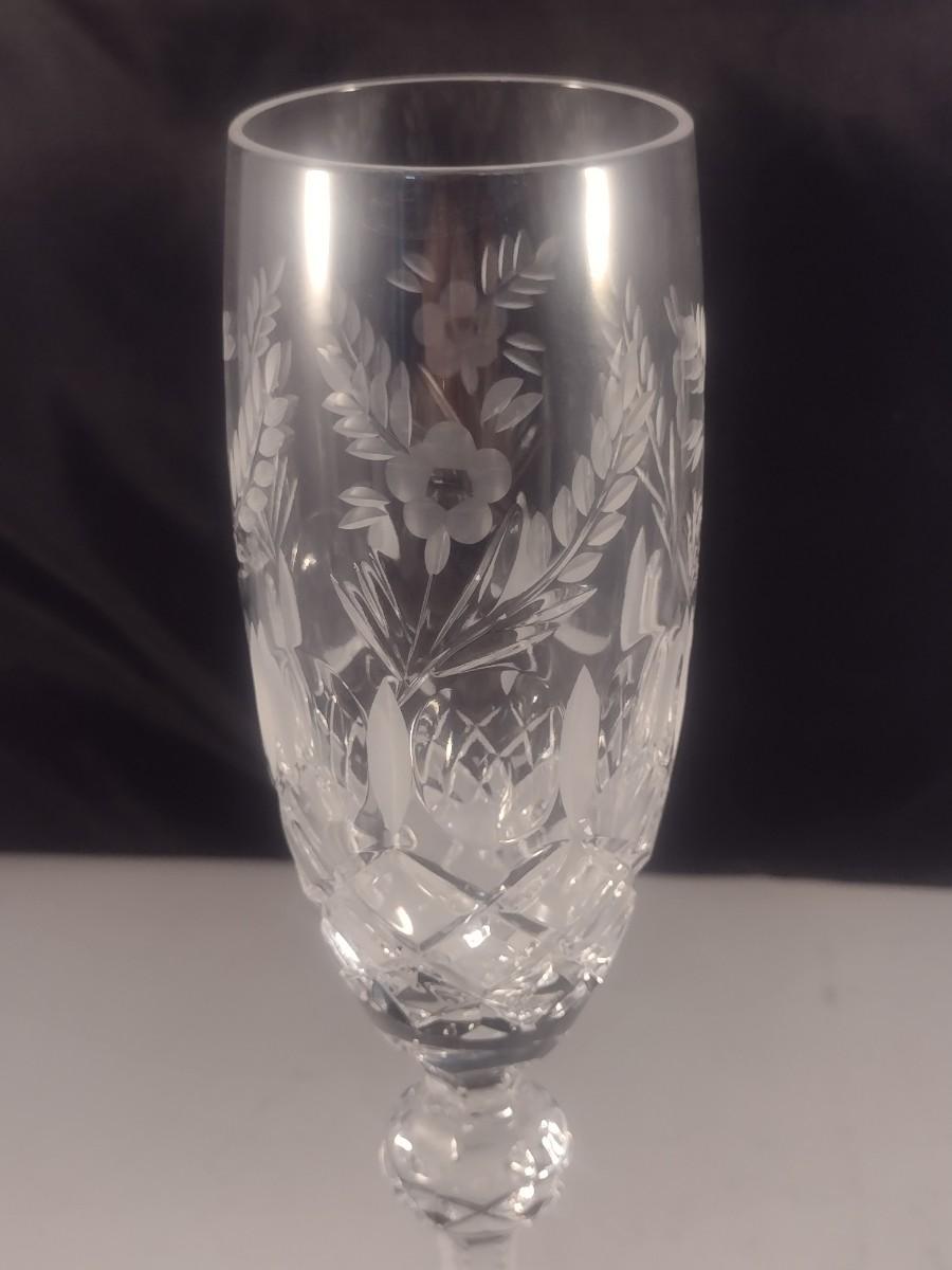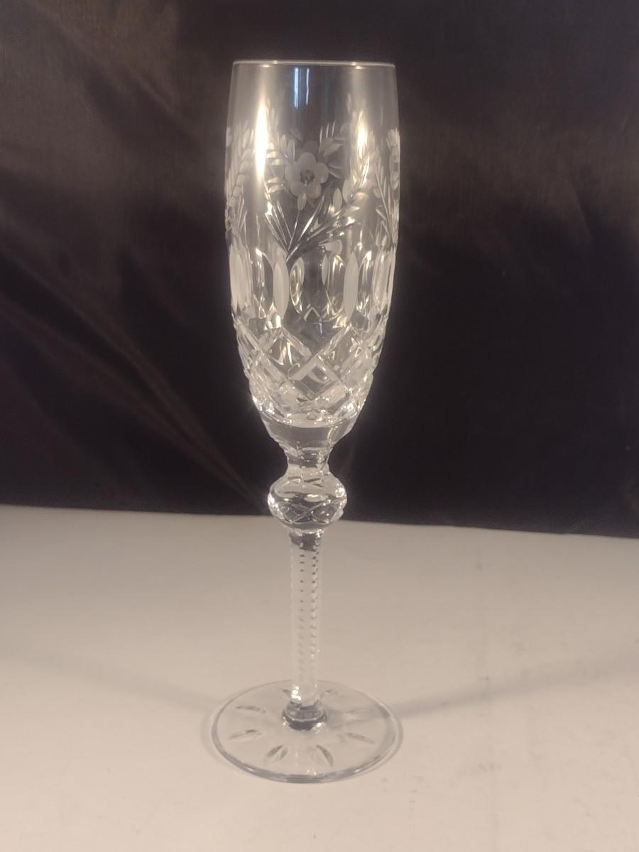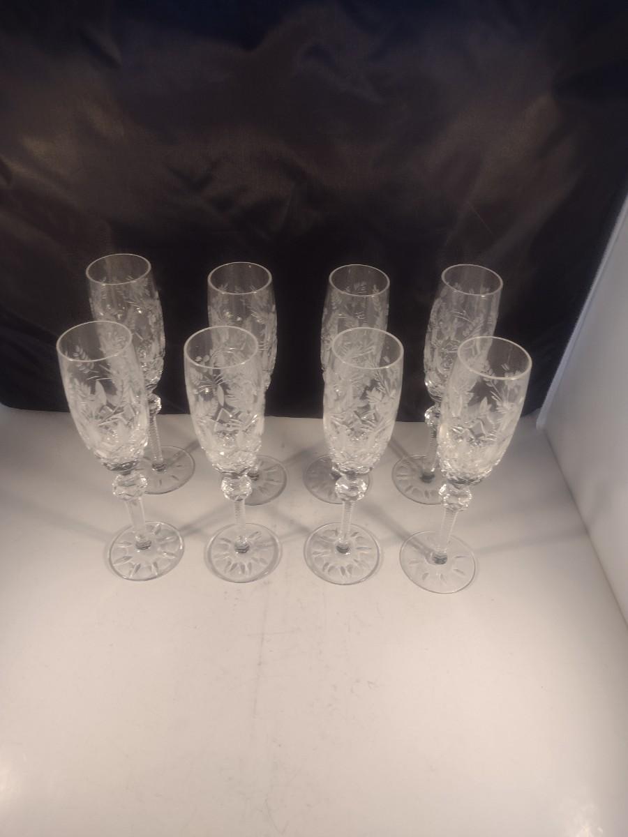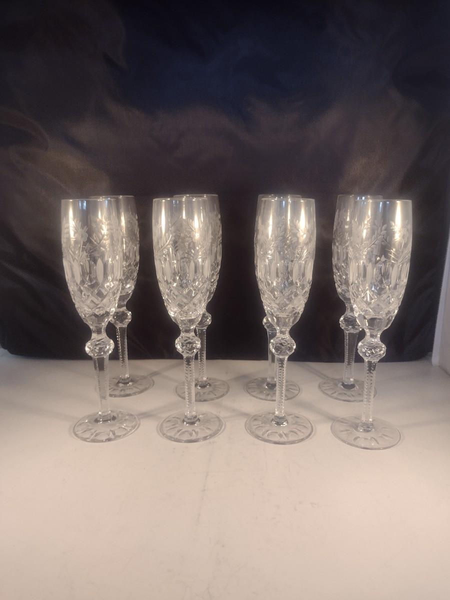Set of Eight Crystal Clear Industries Crystal Glass Stemmed Champagne Flutes
