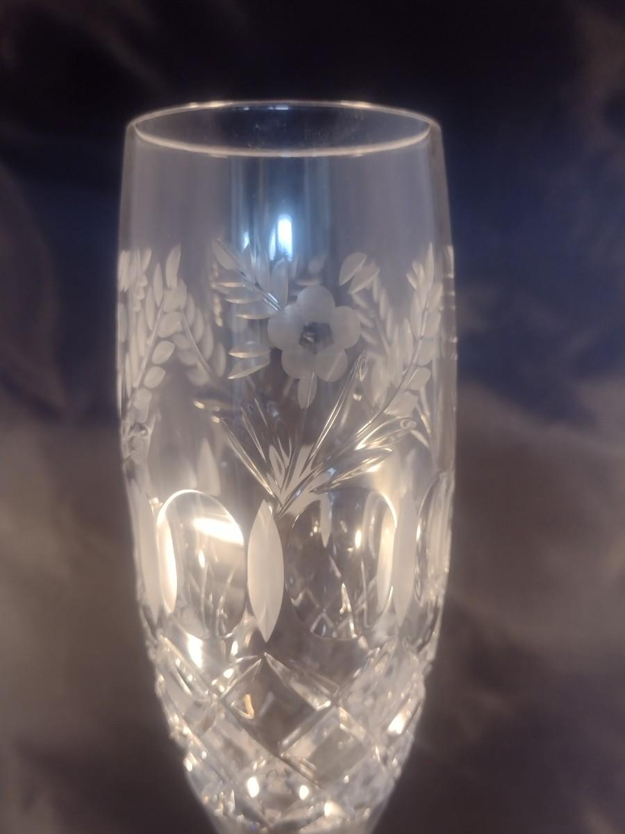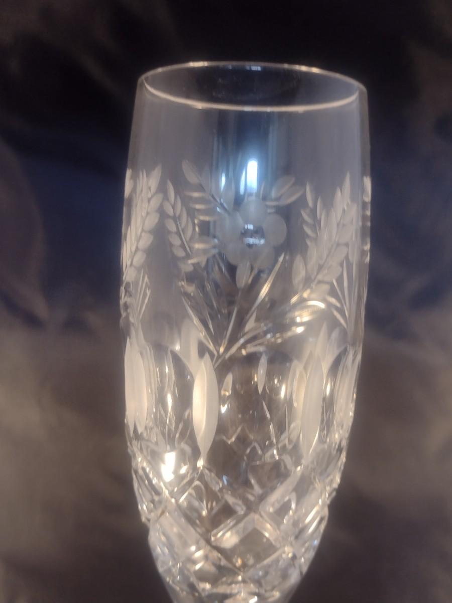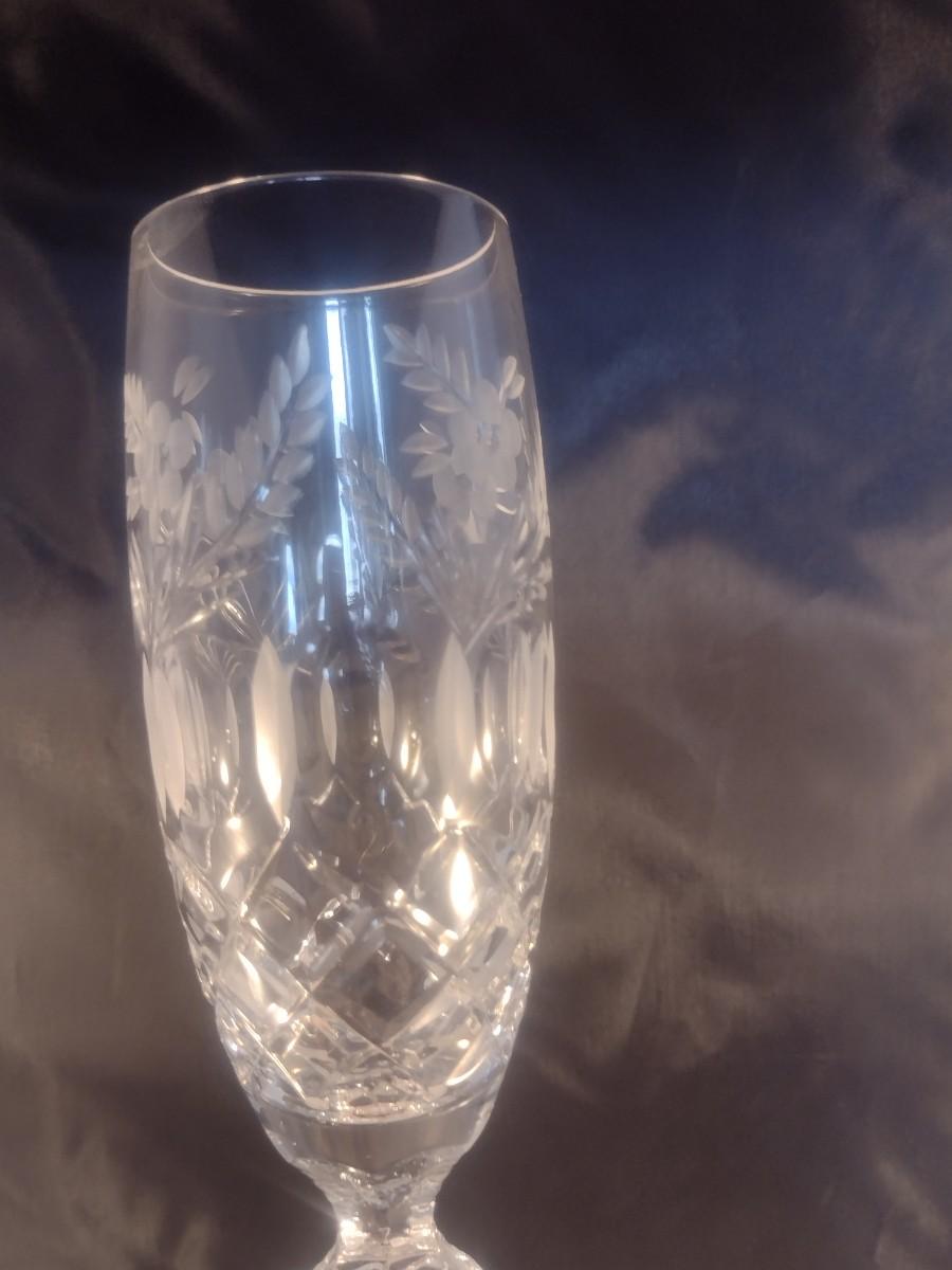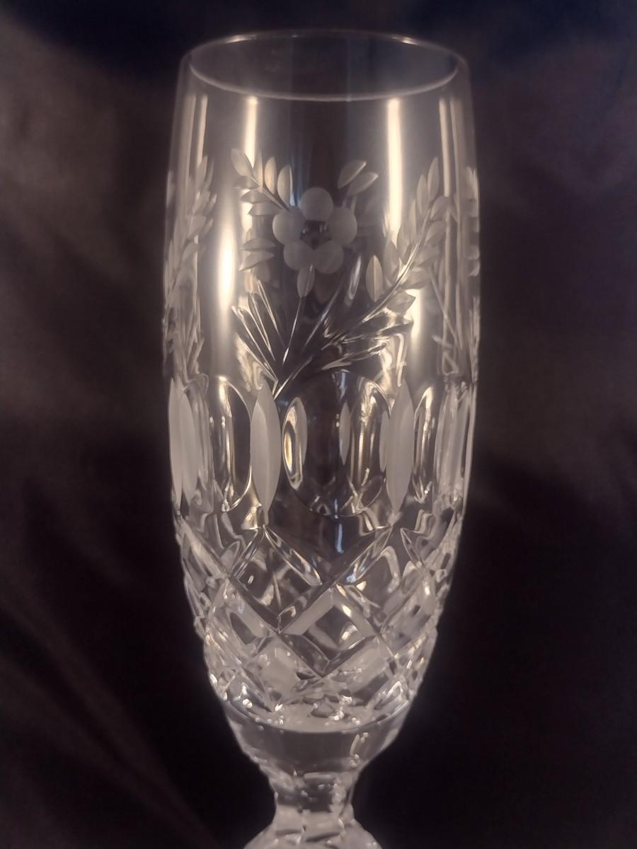 Set of Eight Crystal Clear Industries Crystal Glass Stemmed Champagne Flutes