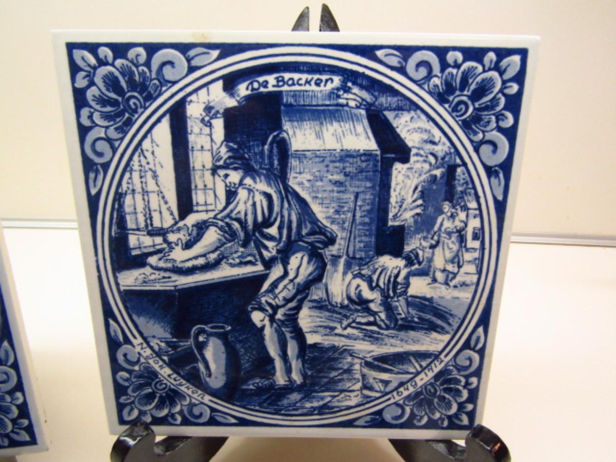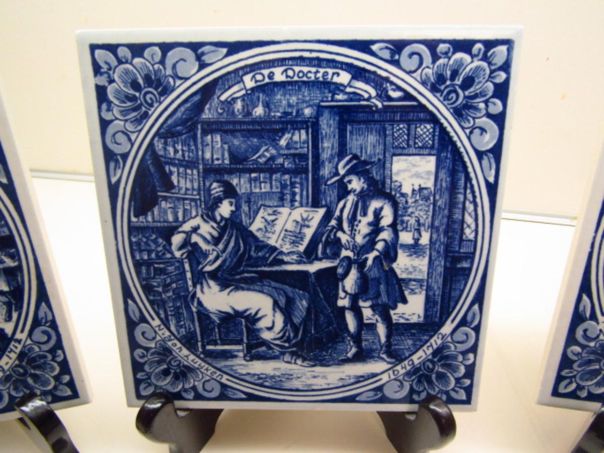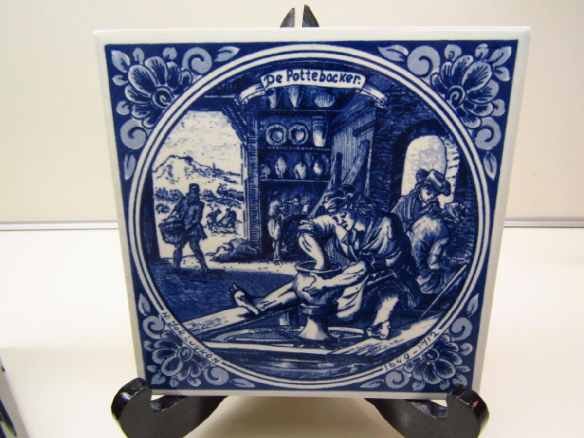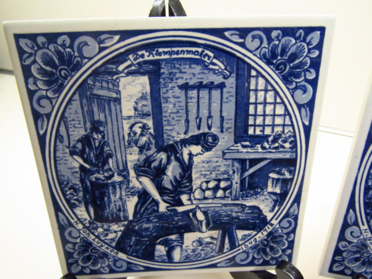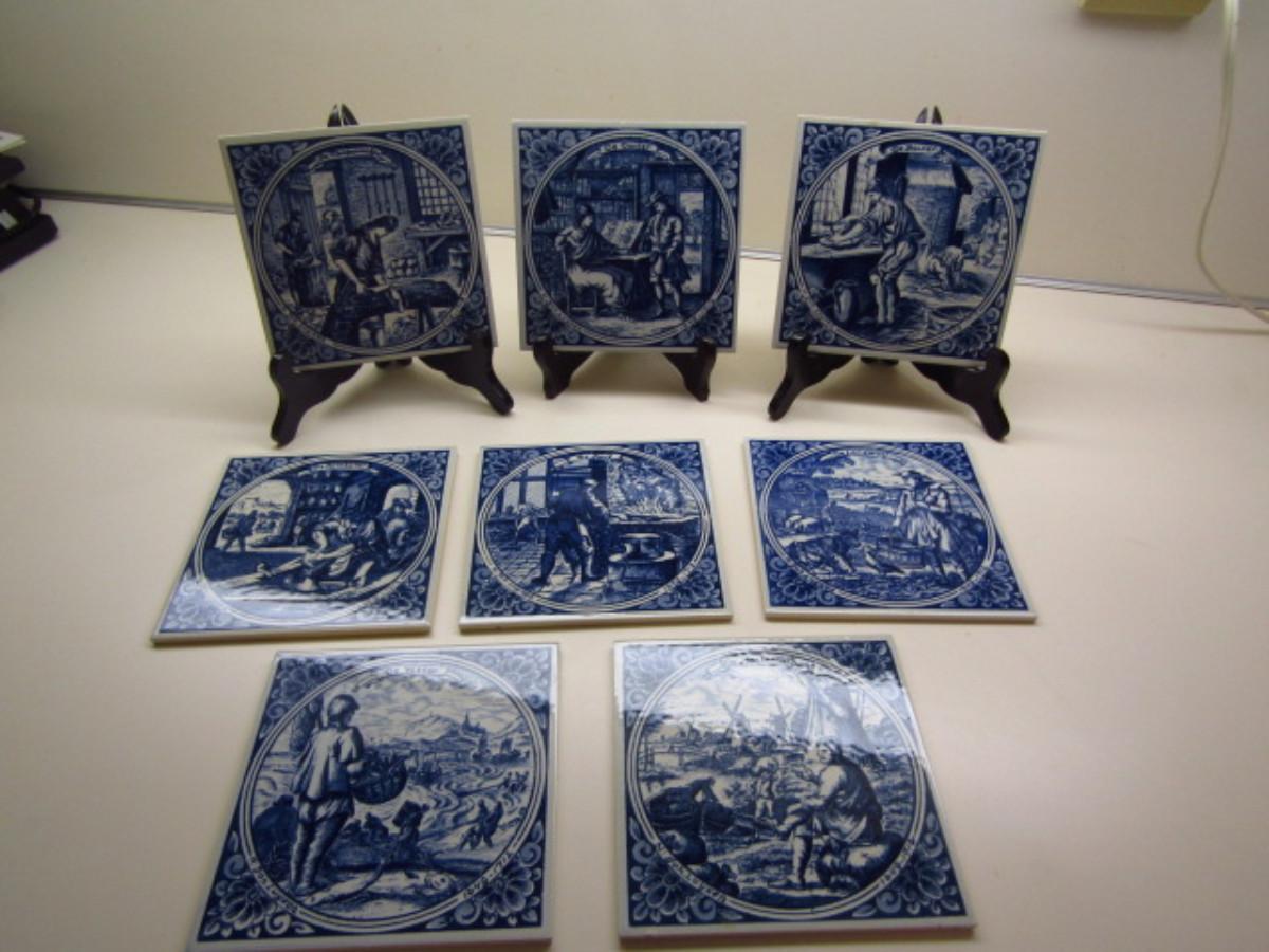 Set of Eight Delft Blauw Trivets in Classic Blue and White- 6" Square