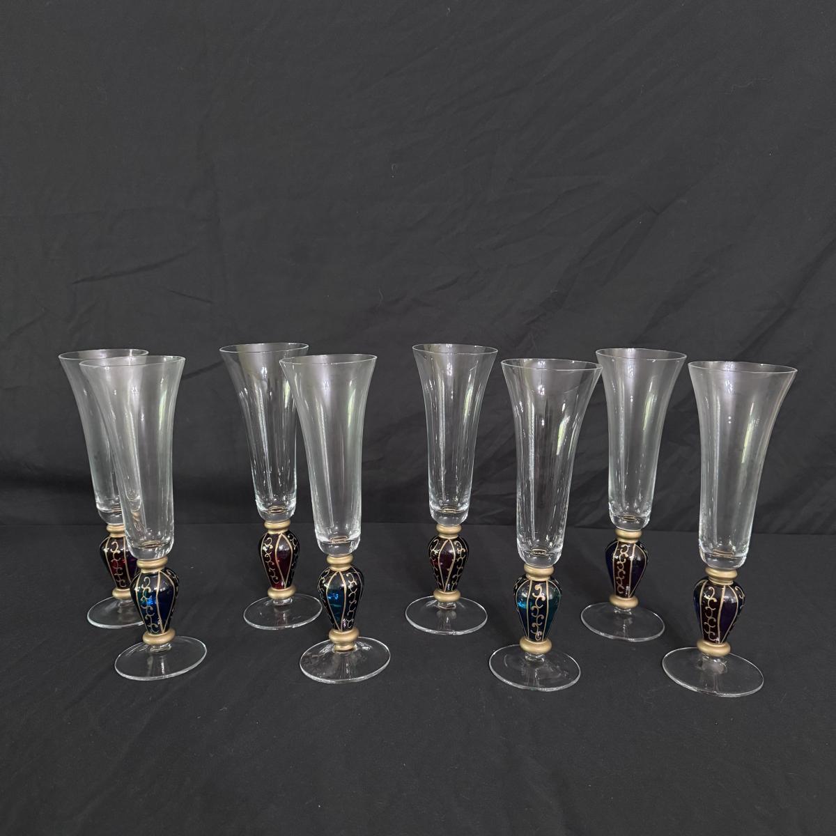 Set of Eight Dichroic Carnival Champagne Glasses (DR-DZ)